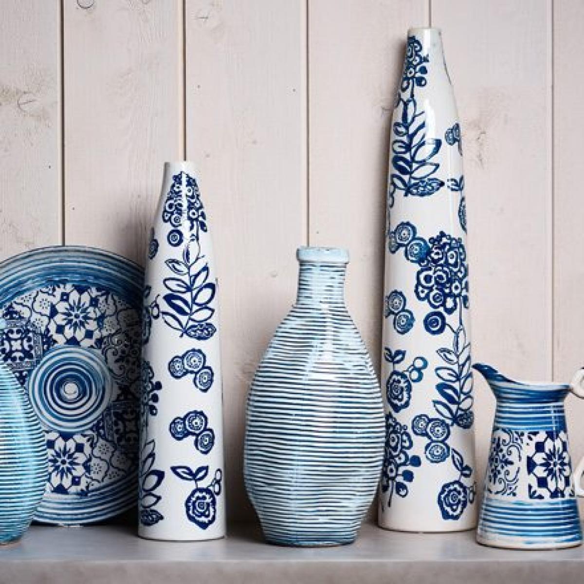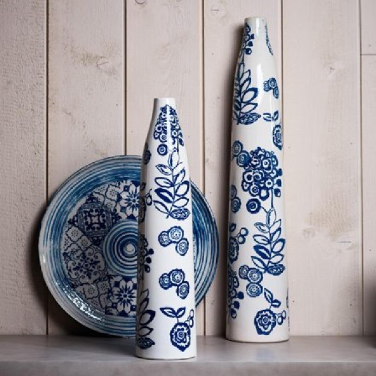 The artistic traditional design of the ceramic Tiled Slim Vase adds a splash of blue to your living or dining room. A piece that would look lovely on an oak unit holding a pale coloured stem. Explore the rest of the tiled collection for more vases, platters and jugs in a similar style.