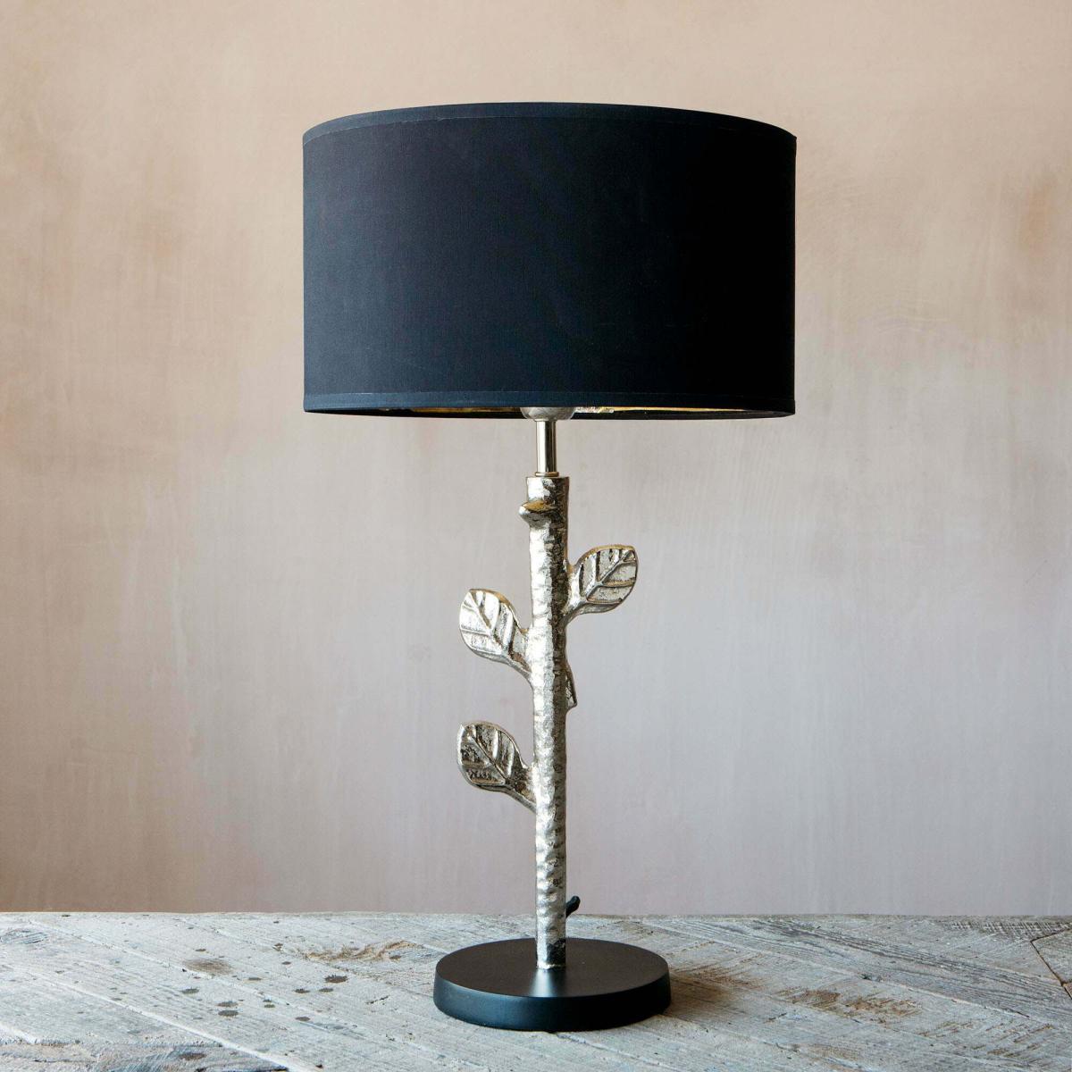 Style this romantic leaf table lamp with a floral lampshade to emphasize the rose stem inspired base complete with delicate silver leaves.