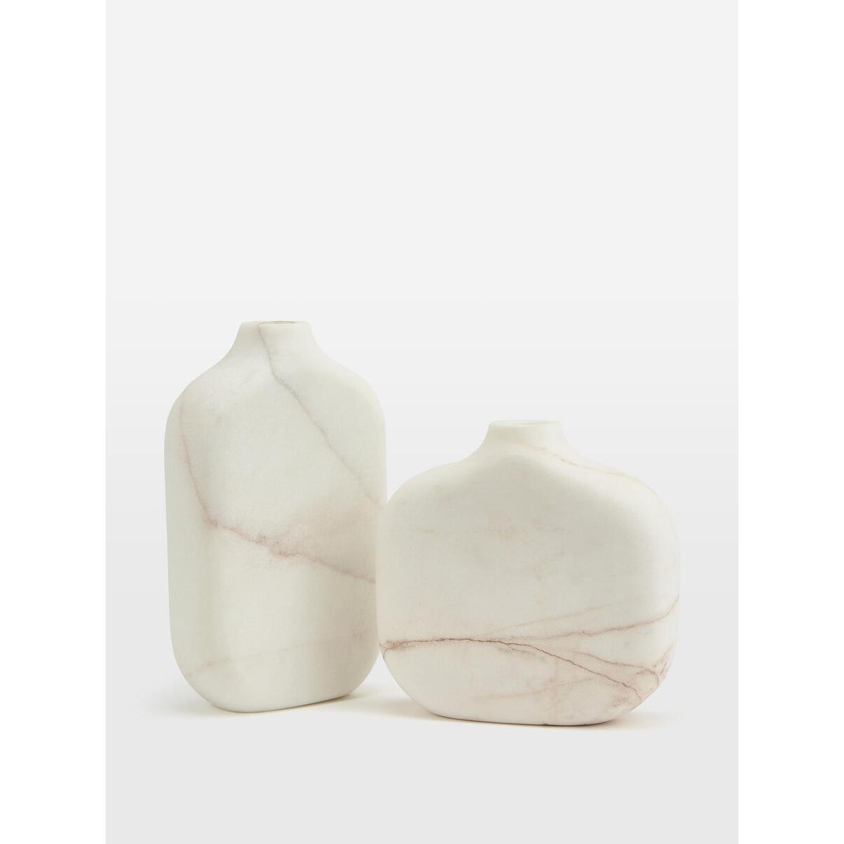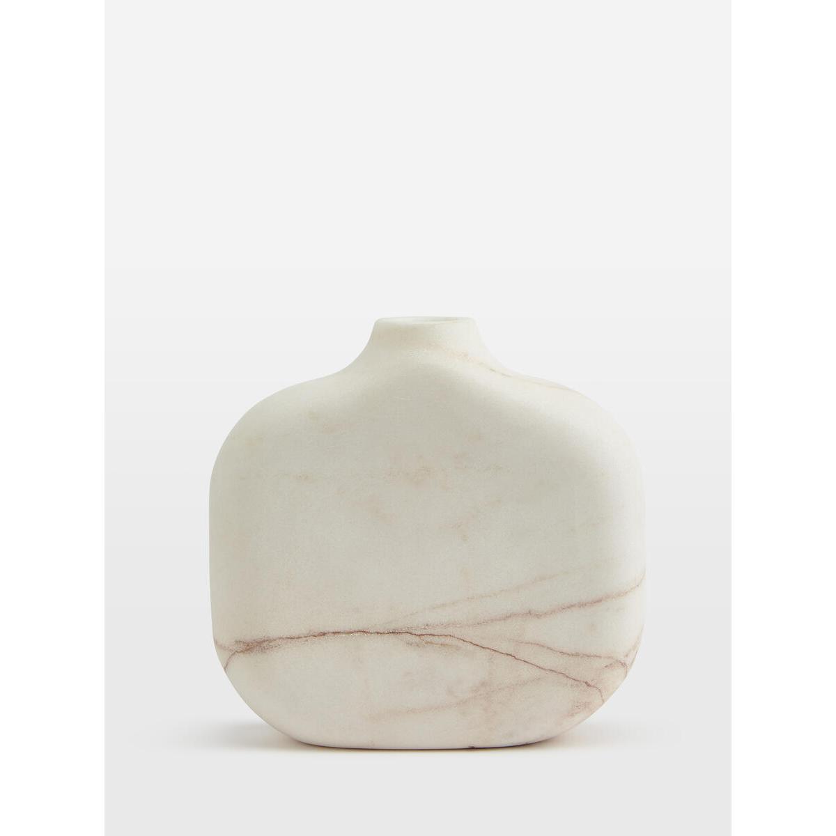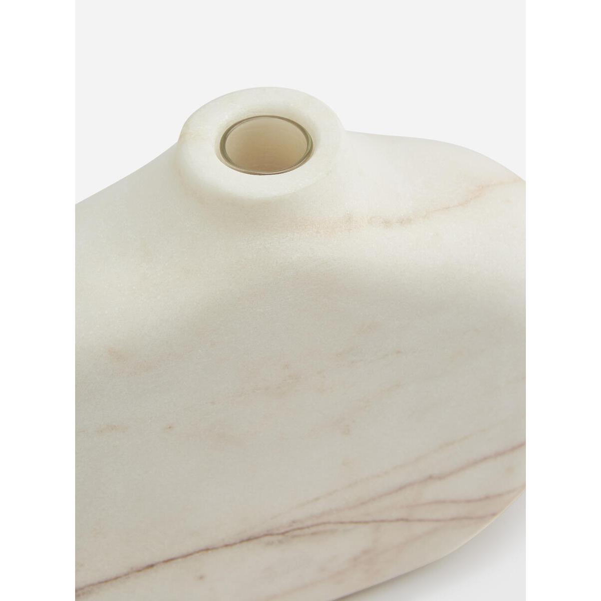 Display stems and tall fronds in our Red Thread marble bottle vase, designed with a glass liner to hold water. Constructed from a weighty white marble, each vase is entirely unique due to the distinctive veining in the natural stone. Perch it on a bookshelf or side table to echo the marble textures at 180 House. Small marble bottle-shaped vase Glass liner to hold water Each vase is unique due to the veining in the stone Inspired by 180 House