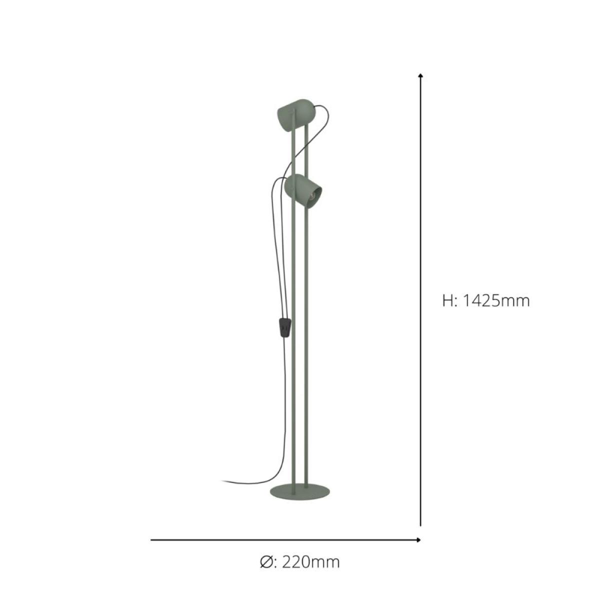 The Tilston 2-Light Green Floor Lamp combines clean lines with functional versatility. It consists of a slim frame in a matte forrest green finish, on which two cylindrical headlights are placed. They can be individually adapted to individual lighting needs. The modern and minimalist design will easily fit into a variety of interior designs – from Scandinavian to urban.