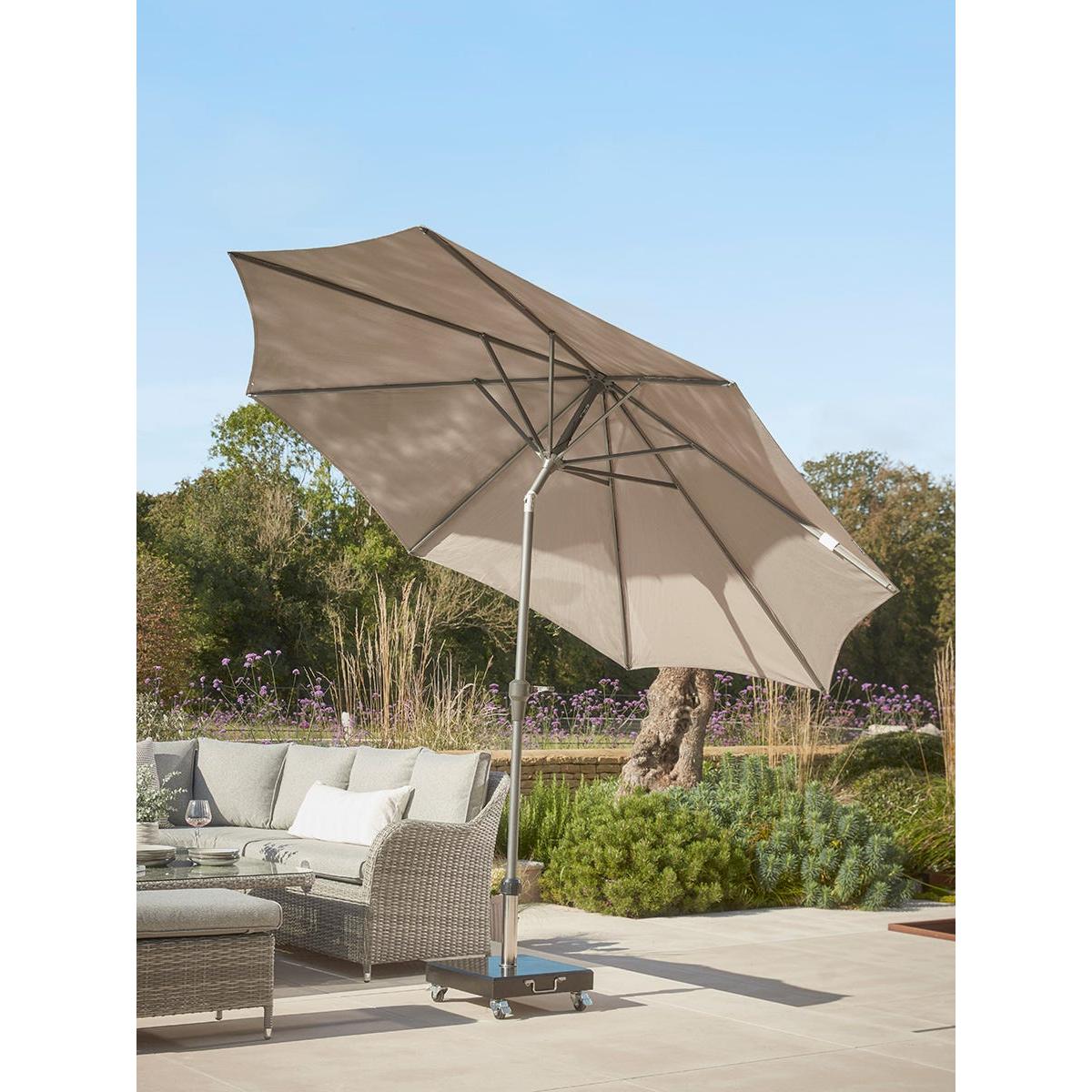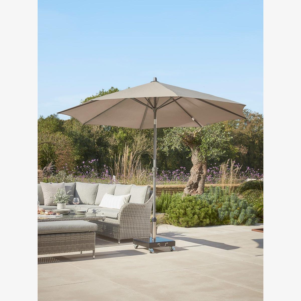 Providing ample shelter and shade, this elegant but durable parasol will make family dining on the terrace or lounging outside both relaxing and stylish. Our parasol has an all-weather canopy with a UV protection rating of 50+ and can be tilted to the perfect angle. This parasol should be secured with a Square Ceramic or Square Granite parasol base (sold separately).