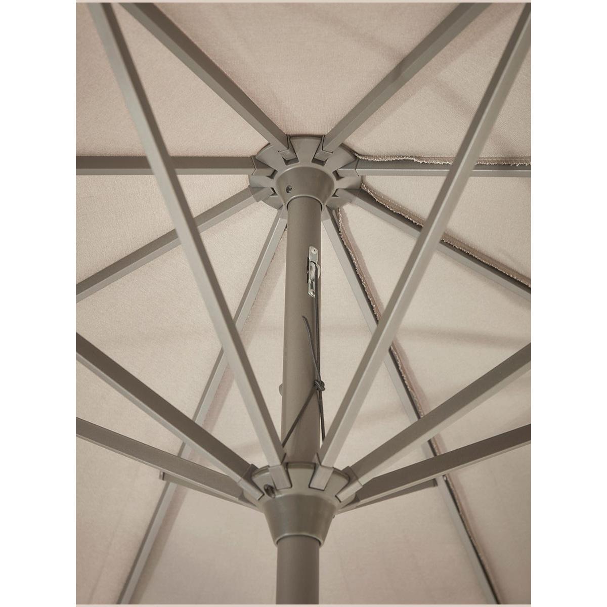 I love this sun umbrella for its practical tilt feature, which allows easy adjustment to shield you from the sun at different angles throughout the day. It’s versatile enough to work in both outdoor living spaces and terrace settings, adding a touch of understated sophistication. When styling with this parasol, consider pairing it with neutral or natural-toned furniture to enhance its understated appeal, or dress it up with textured cushions and throws for a relaxed, inviting vibe. To keep the look cohesive, use a matching parasol base for stability and consider positioning it near a contemporary daybed or loungers to create a perfect shaded lounging spot.