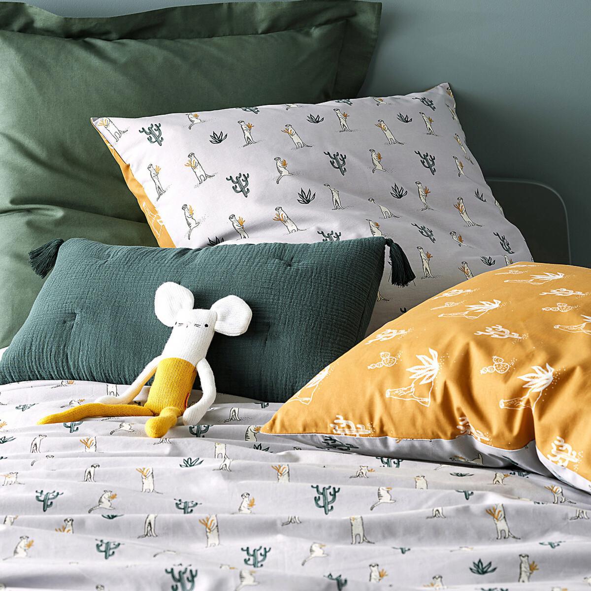 The Tim organic cotton pillowcase is animated with small mongooses and colourful cacti. Organic cotton is a natural and comfortable material, soft and light. It's longwearing and easy to care for.