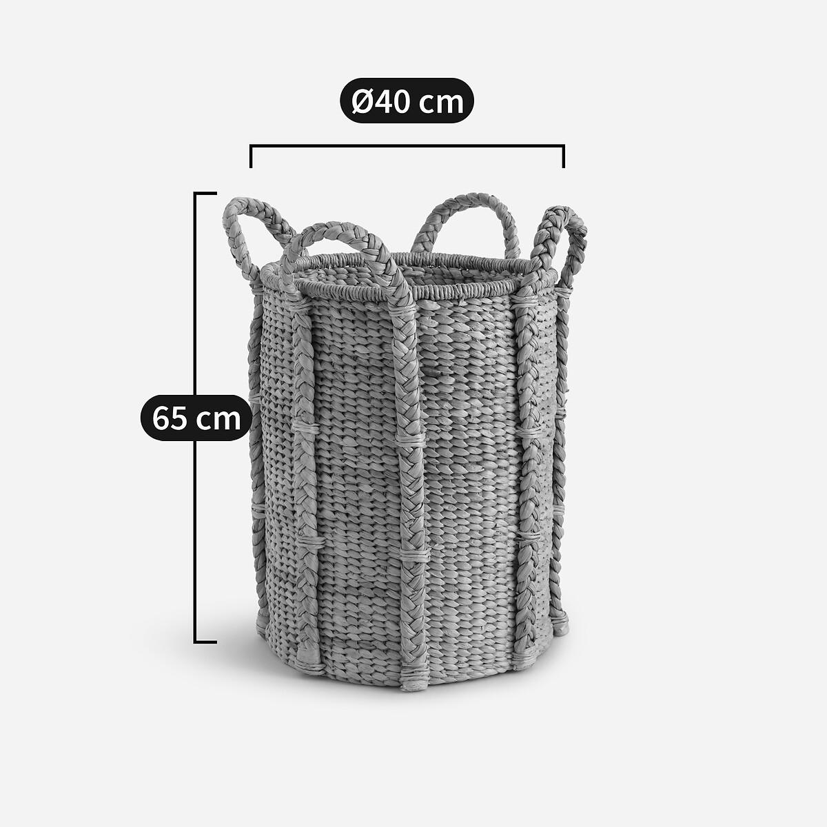 A basket that combines tradition, naturalness and functionality. Handcrafted in Indonesia, Tima uses a combination of weaving techniques to give it its distinctive personality. With handles for easy movement, this tall, round basket in water hyacinth is practical and decorative and can be used in any room to store the essentials. Product Details • In water hyacinth reed • Handcrafted braiding • Handles Dimensions • Diameter: 40cm • Height: 55cm (65cm with handles)Dimensions and weight of parcel • 1 parcel • L43 x H69 x D43cm. 1.6kg