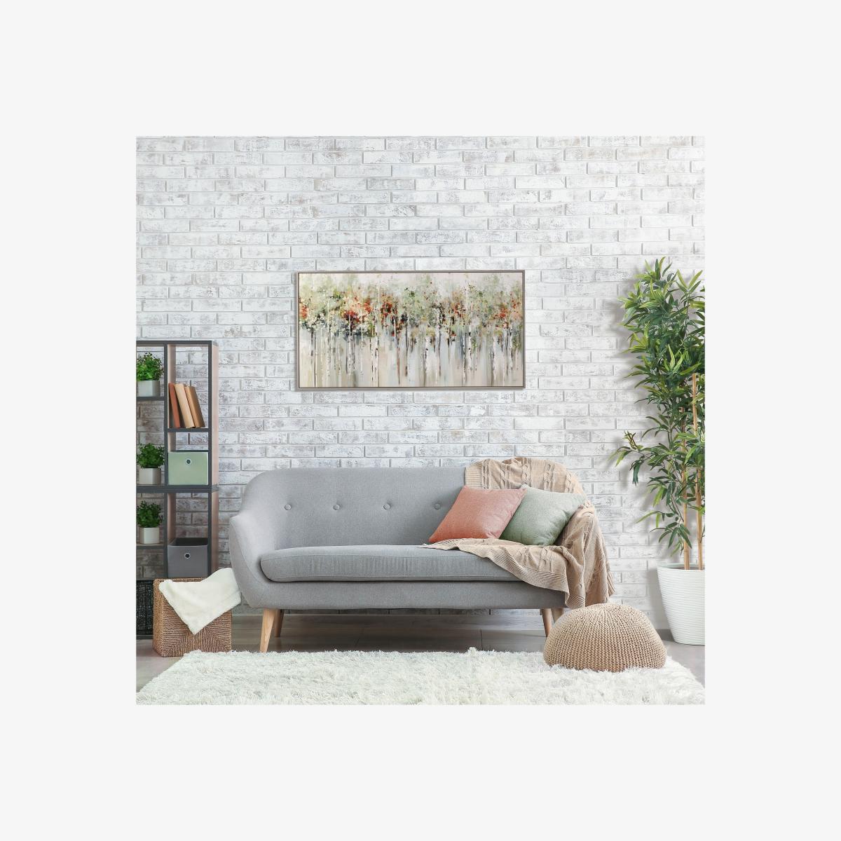 * Soft, tranquil tones* Abstract canvas print* Framed and ready to display This abstract piece evokes a feeling of a tree-lined landscape. With soft colours and occasional pops of colour, it’s a great addition to calming interior designs. The canvas print is presented in a sleek, modern frame which is easy to hang, and the print is fade-resistant to protect the colours over time.