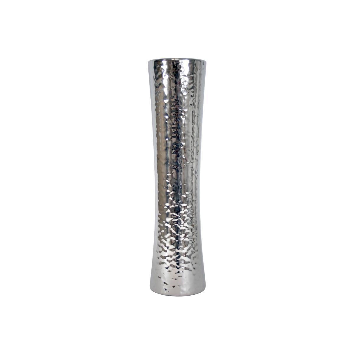 Designed with a simple dimple finish, this sleek silver modern vase will add an elegant finishing touch to any living space.