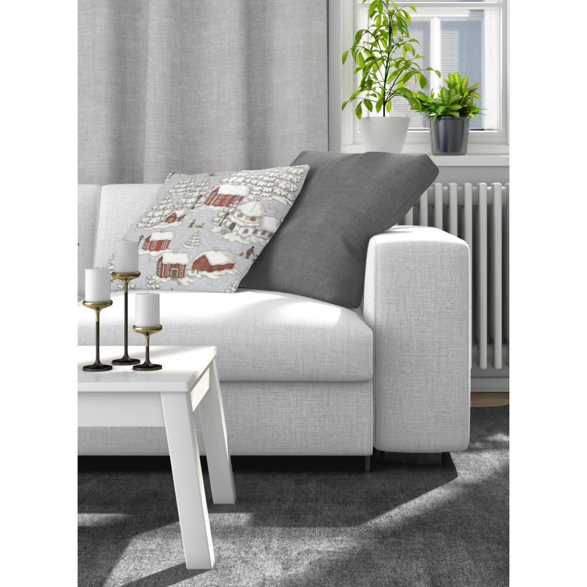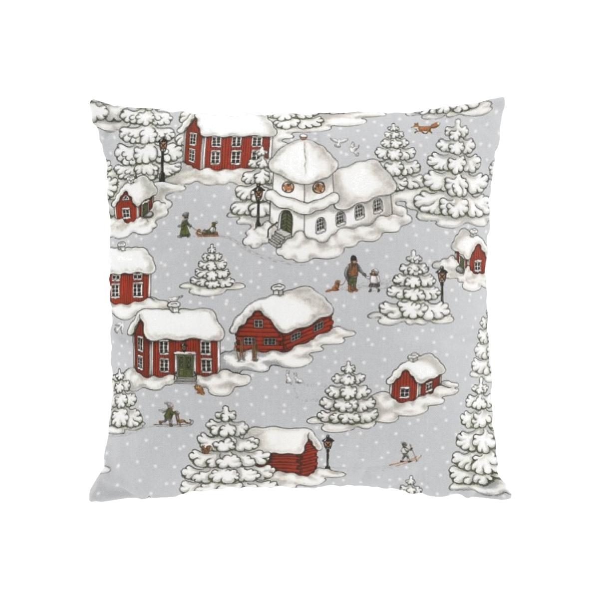 Timmerbyn pillowcase 47x47 cm from Swedish Arvidsson's Textile is made of high-quality cotton with a lovely winter landscape with snow-clad cabins, churches and small figures. Place this pillowcase on the sofa or armchair in the living room and you create a cosy winter feeling in the room. Light some candles and relax together with the family or with your friends!.