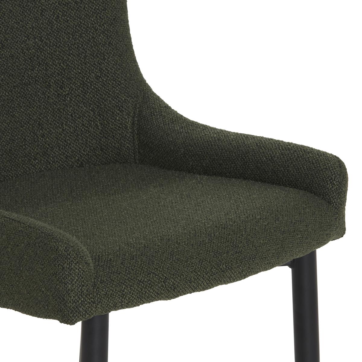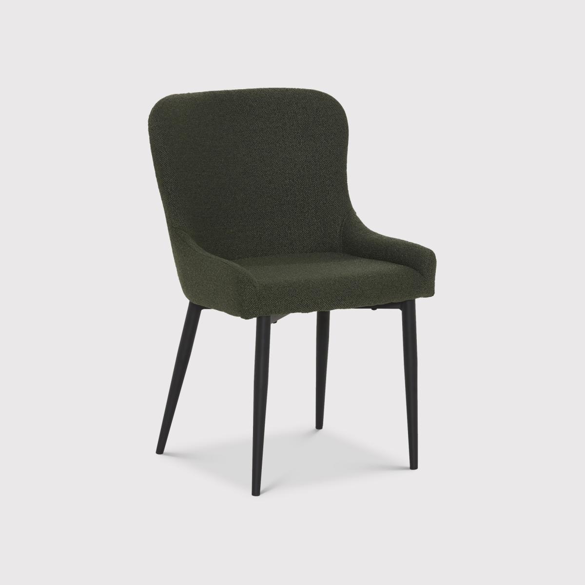 Upholstered in a stunning green on trend boucle fabric and finished with black metal legs the Timmins Dining Chair gives a true nod to its mid-century inspired design. These comfortable dining chairs would look fabulous paired with many styles of dining tables creating a stunning dining set. The Timmins Dining Chairs reflect the latest interior trends and are a real stylish addition to your space.