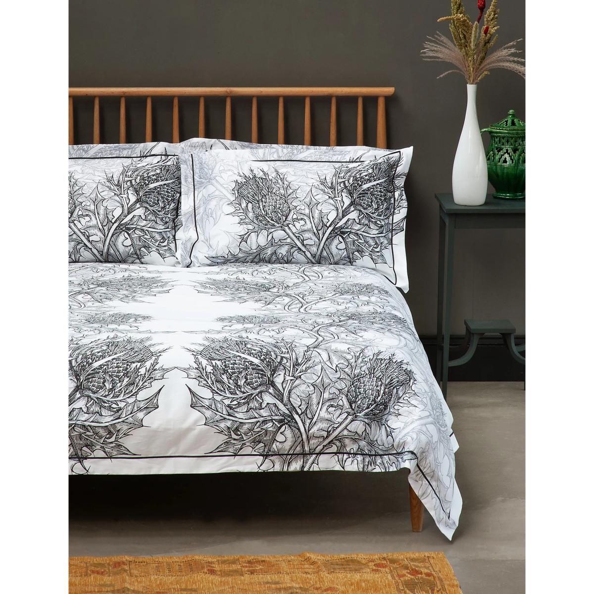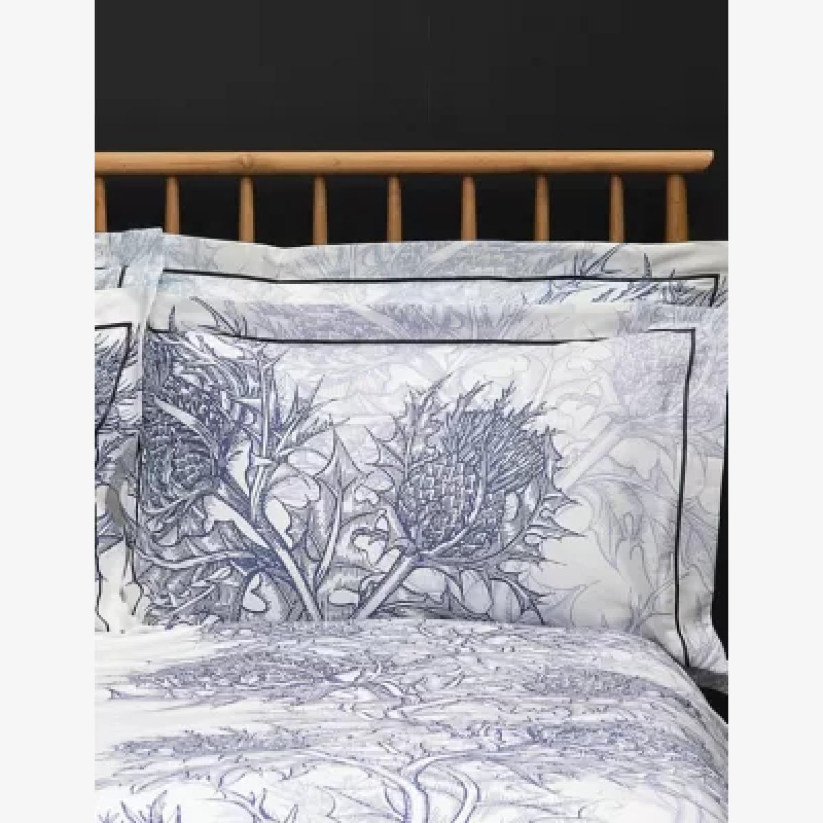 Lend a botanical charm to your bedroom with this bedding set by Timorous Beasties. It's beautifully adorned with a bold thistle print, which is rendered in a go-with-everything monotone palette of azure blue and white. Quality sateen cotton with a 220 thread count gives this set a wonderfully smooth and soft feel.