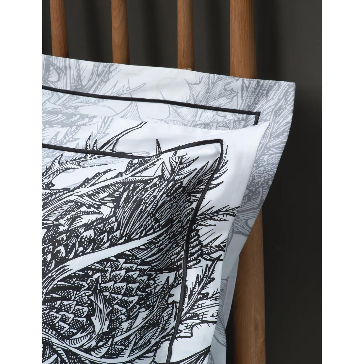 Lend a botanical charm to your bedroom with this bedding set by Timorous Beasties. It's beautifully adorned with a bold thistle print, which is rendered in a go-with-everything monotone palette of azure blue and white. Quality sateen cotton with a 220 thread count gives this set a wonderfully smooth and soft feel.