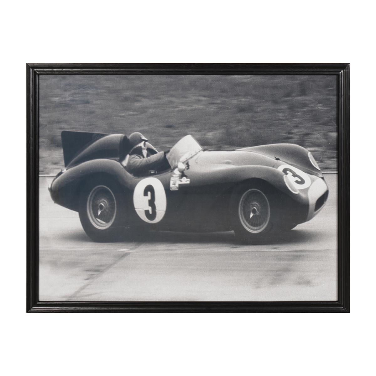 Design. Racing Jaguar XKD 1956 (no. 3) with legendary Lucas fuel-injection system, raced at Le Mans in France, photographer unknown Art-line piece is printed on museum quality archival paper, framed in solid oak and covered with tempered glass.