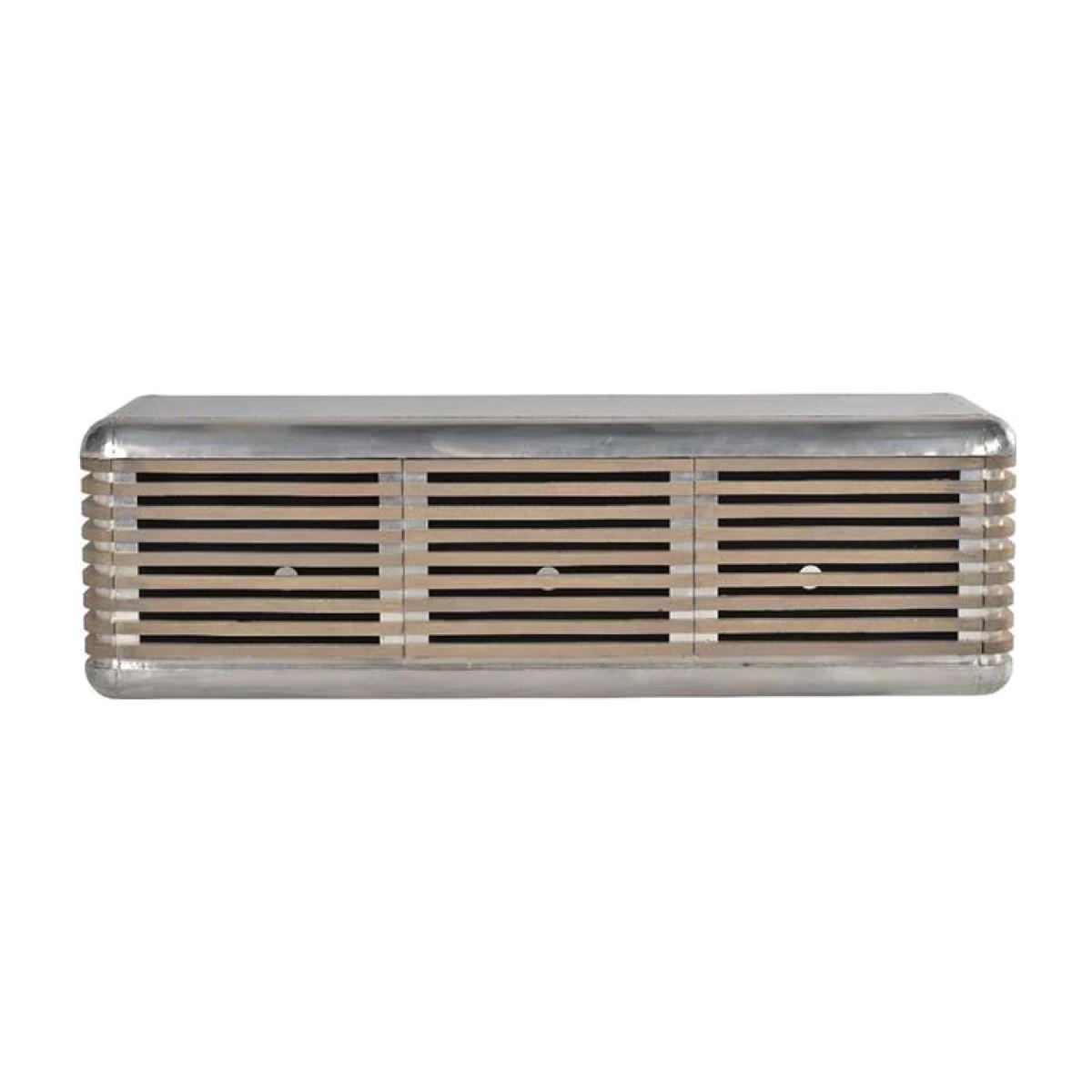 I love this cabinet for its industrial-chic vibe, making it a standout piece in both contemporary and eclectic interiors. The mix of metal and natural wood slats adds texture and character, perfect for adding a tactile element to your living space. It’s versatile and works well in open-plan lounges, coastal homes, or spaces with a vintage touch. For styling, keep the top surface clear with a few decorative objects like vases, books, or a statement lamp, allowing the textured slats to remain the focal point. Inside, it’s practical for concealing media equipment while adding a touch of design flair, making it as functional as it is fashionable.