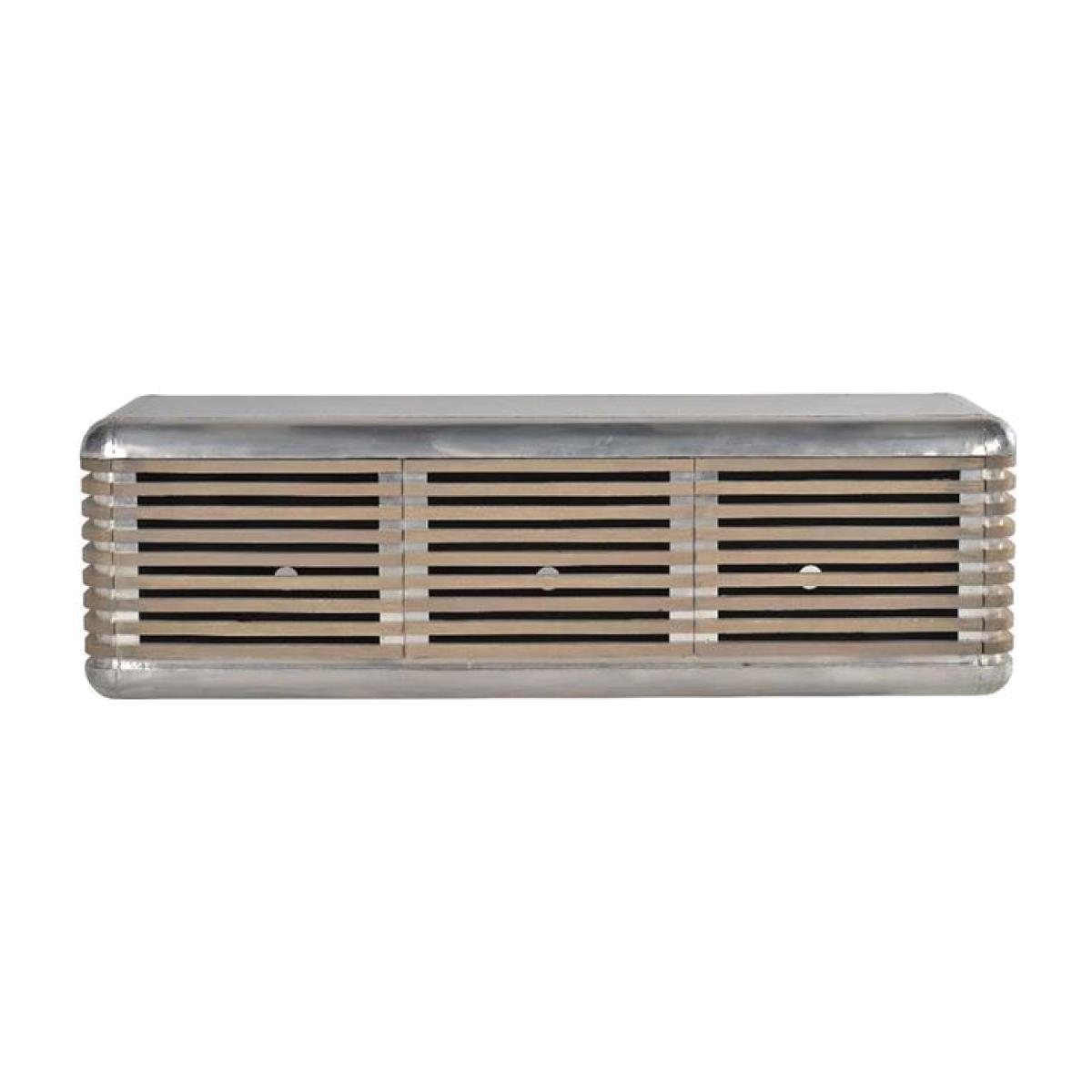 I love this vintage-inspired media unit because of its bold, industrial aesthetic combined with a touch of texture from the metal slats. It works particularly well in eclectic, modern, or retro interiors, adding a statement piece that balances raw materials with sleek design. When styling, consider keeping accessories minimal to highlight its architectural details - a simple vase or a stack of books will do. For practicality, it offers ample hidden storage, making it perfect for keeping clutter out of sight while showcasing key decor items on top. Pair it with leather seating or warm textiles to create a cosy yet contemporary vibe that lets this piece truly stand out.