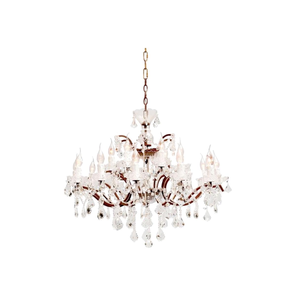 The Crystal lighting collection is inspired by the elaborate designs of late Georgian era chandeliers. This handcrafted range features many hallmarks of Georgian design including large crystal baluster centrepieces, precision cut glass crystals, candle lights and corresponding bobeche dishes originally used to collect candlewax. These elaborate and romantic features are starkly contrasted with the rustic aged metal patina of our proprietary Antique Rust finish to create its uniquely authentic and Timothy Oulton look.