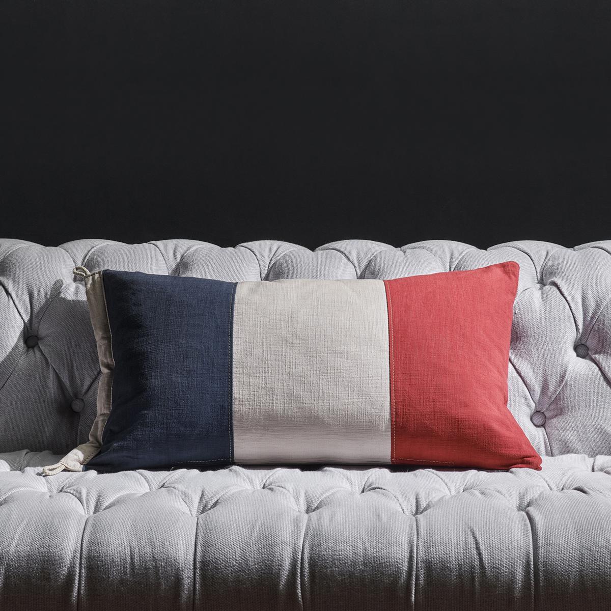 Flags enable bold statements on affiliations, roots, origin, history or aspirations and offer a visually compelling addition to a room with their contrast, colour and strong graphics. This gorgeous France flag cushion in vibrant colours will bring a bold statement to any room.