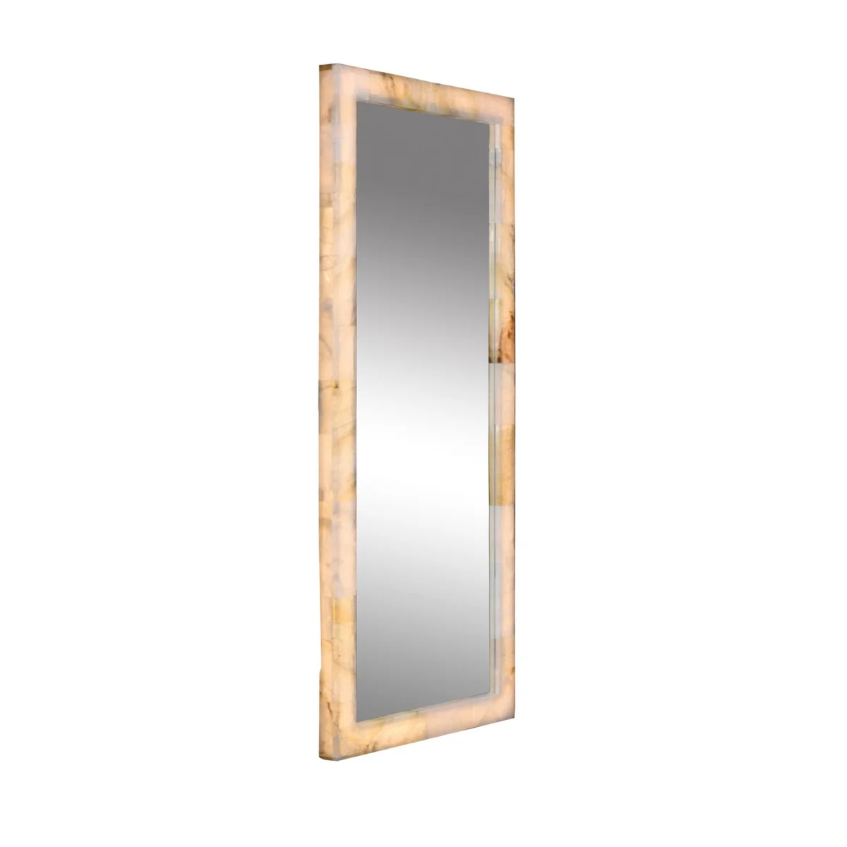 Inspired by nature's ancient beauty, the Frozen Tall Mirror by Timothy Oulton features natural calcite crystals in a stunning Pearly Quartz finish. Known for their mystical properties, calcite crystals are said to stimulate mental energy and encourage moving forward. More opaque and milky than traditional quartz, each crystal emits a soft, gentle glow, with subtle earthy tones adding unique character. Part of the full Frozen collection, this mirror combines enchanting elegance with a mystical charm, perfect for elevating interiors. Ideal for living spaces, bedrooms, or entryways, it brings timeless beauty, natural wonder, and subtle lighting magic to your home.
