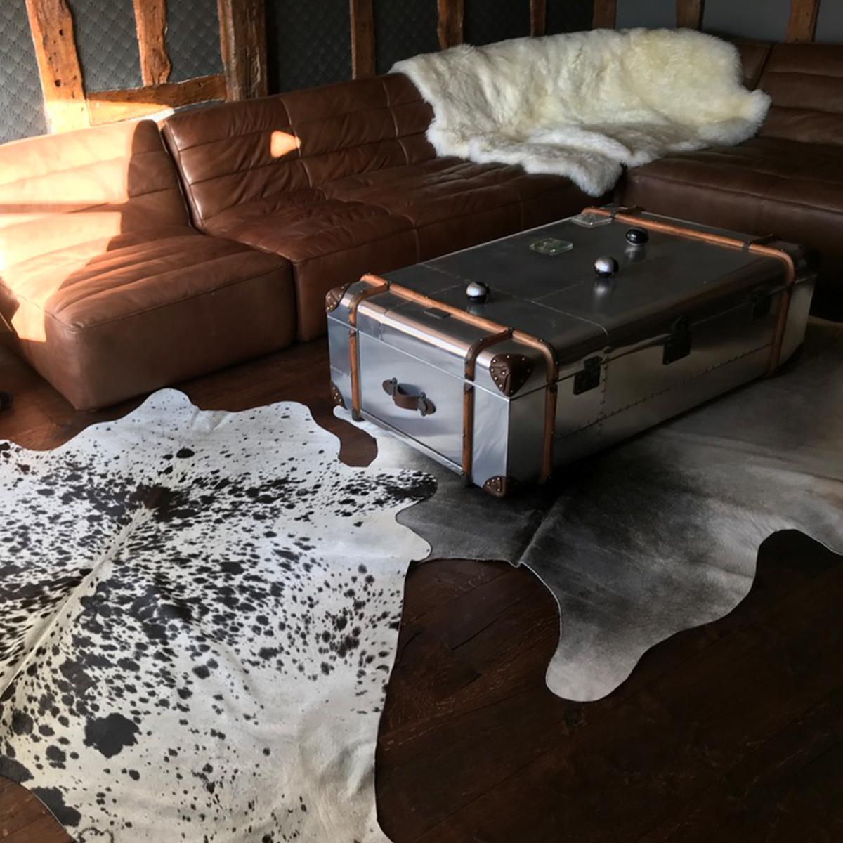 I’m a big fan of the Globetrekker coffee table for its mix of industrial flair and vintage charm - the riveted aluminium finish and leather-trimmed corners give it real character without being over the top. Its extra-large size works brilliantly in open-plan living rooms or loft-style spaces where you need a statement centrepiece that doubles as a sturdy surface for books, trays or even impromptu board games. Styling tip: soften the metallic look with a neutral wool rug and a low-profile sofa in natural linen or leather. Add a couple of travel-inspired tomes, a sculptural bowl of textured balls and a sprig of greenery in a simple vase to balance ruggedness with warmth.