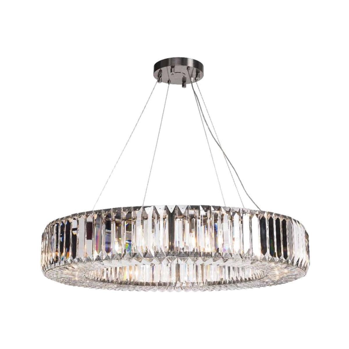 Design. Named after the Roman king, Herod the Great, the Herodes pendant is grandiose in both stature and drama. This spectacular floating halo of sparkle and shimmer is handcrafted from a circular iron frame, covered completely by tightly packed rows of prismatic baguettes. Each prism is made from optical grade glass, clearer and lighter than crystal, theatrically bouncing the light in every direction for show-stopping glamour.