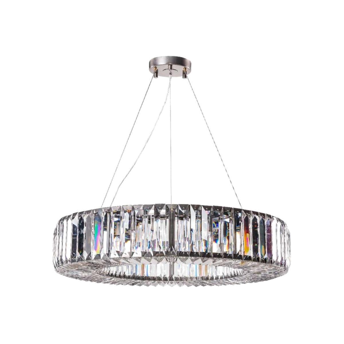 Design. Named after the Roman king, Herod the Great, the Herodes pendant is grandiose in both stature and drama. This spectacular floating halo of sparkle and shimmer is handcrafted from a circular iron frame, covered completely by tightly packed rows of prismatic baguettes. Each prism is made from optical grade glass, clearer and lighter than crystal, theatrically bouncing the light in every direction for show-stopping glamour.