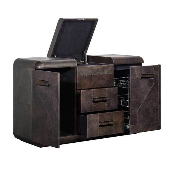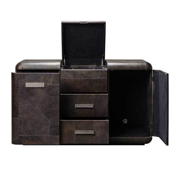 I love the Hudson sideboard for its robust, industrial aesthetic that lends itself well to both contemporary and vintage-inspired interiors. Its dark, distressed finish makes it a versatile piece for adding character to a living room, dining area, or even a hallway. To style it effectively, consider keeping the surface simple with a few selected accessories-perhaps a modern lamp, a stack of books, or a statement sculpture-while using open shelving or inside the drawers for hidden storage. This piece works particularly well in loft-style spaces, eclectic interiors, or rooms with dark timber floors and exposed brick, where its striking look can truly stand out without overwhelming the space.