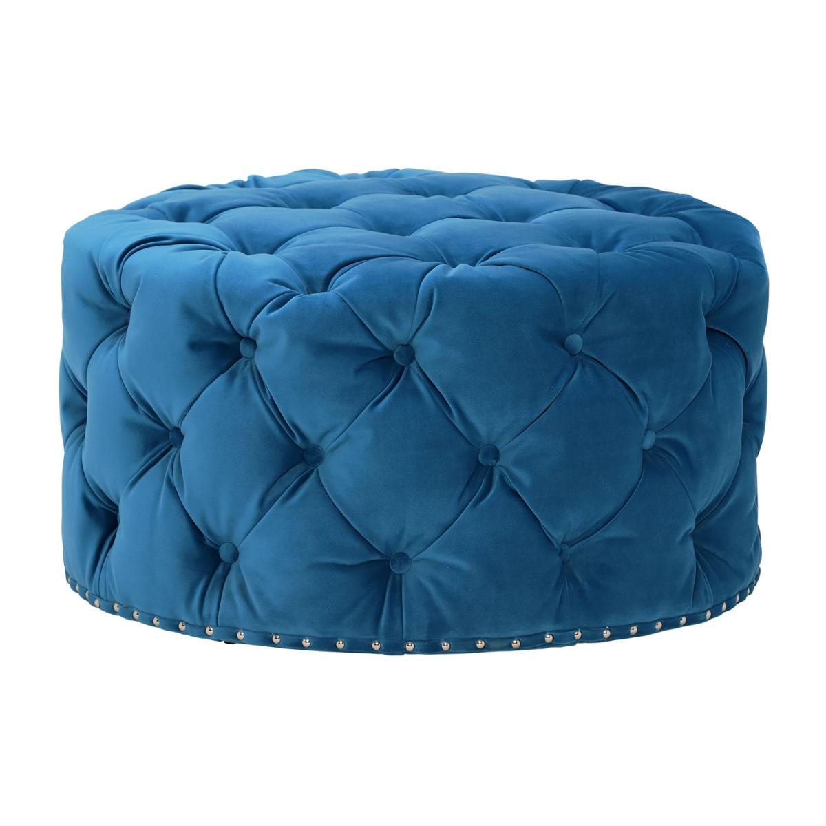 Design. With its 19th Century influence and opulent look, the Lord Digsby medium round footstool by Timothy Oulton makes a grand statement in any space. Upholstered in luxurious Aqua blue velvet with buttoned tufting for extra plushness, it’s a truly sumptuous spot to rest your legs. An elegant studded rim to the base gives it a refined finish, whilst the interior is filled with quality foam and fibre for optimum comfort. Also available in Ruby.