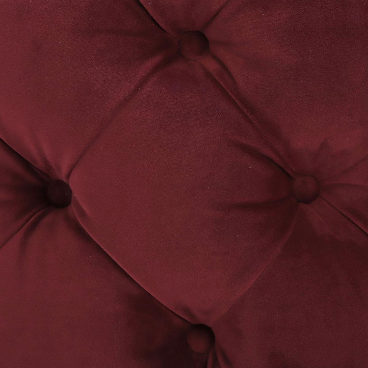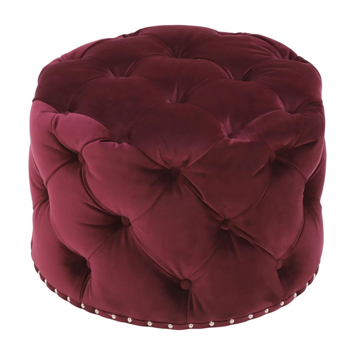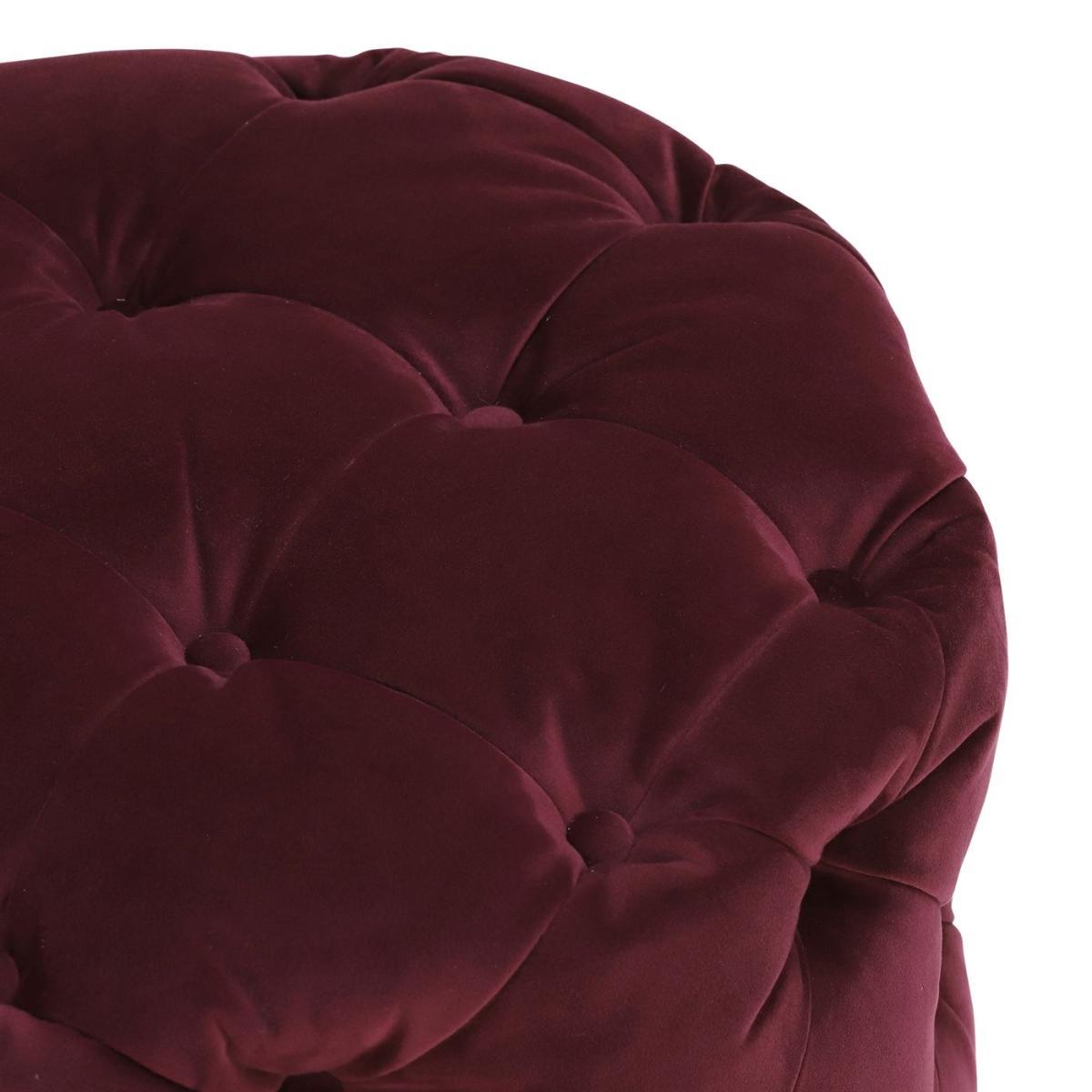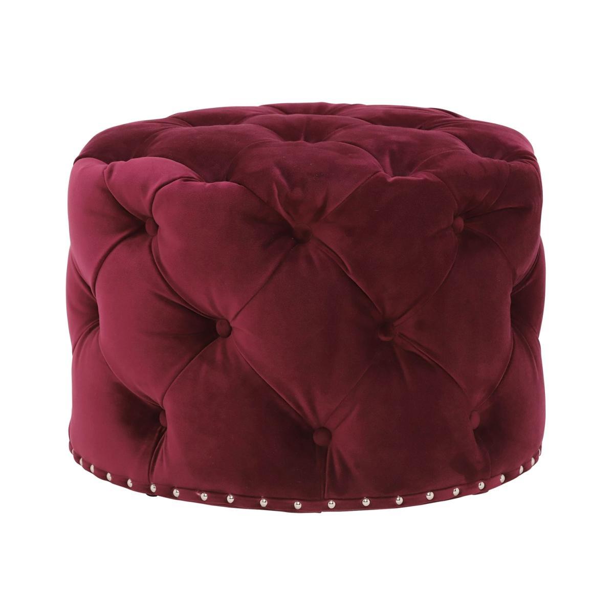 Design. A gorgeous piece that brings elegance and luxury to any living area, the Lord Digsby small round footstool features luxuriously soft velvet upholstery in a stunning Ruby red hue. Detailed with deep buttoned tufting throughout, its 19th century influence is evident. Stylish chrome studs line the bottom for a sleek and sophisticated touch, whilst a lavishly cushioned interior ensures indulgent comfort. Also available in Revival Velvet Aqua.