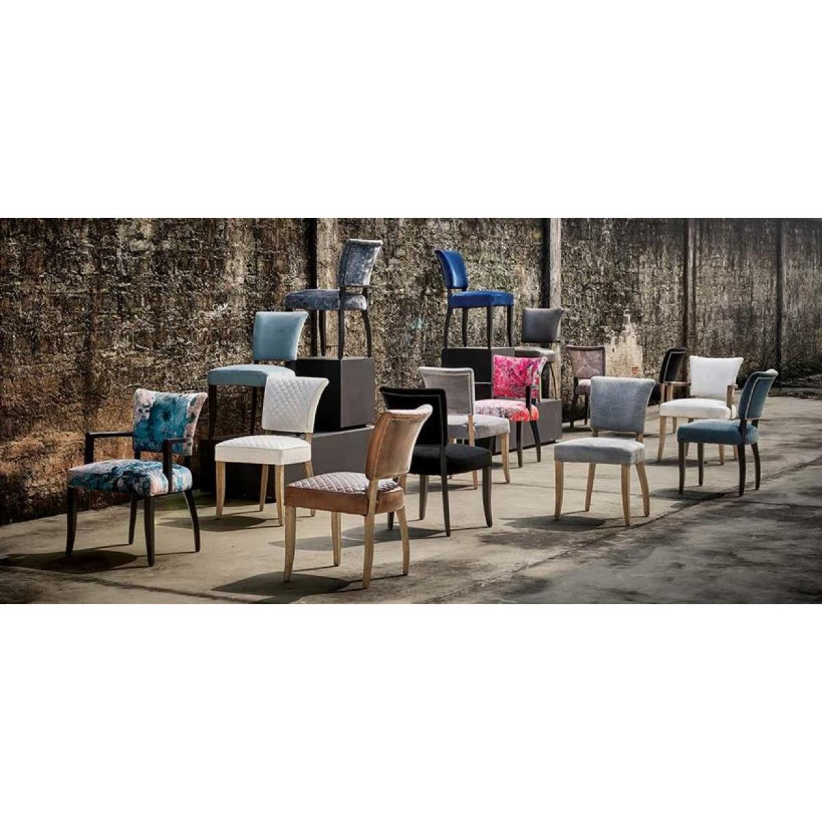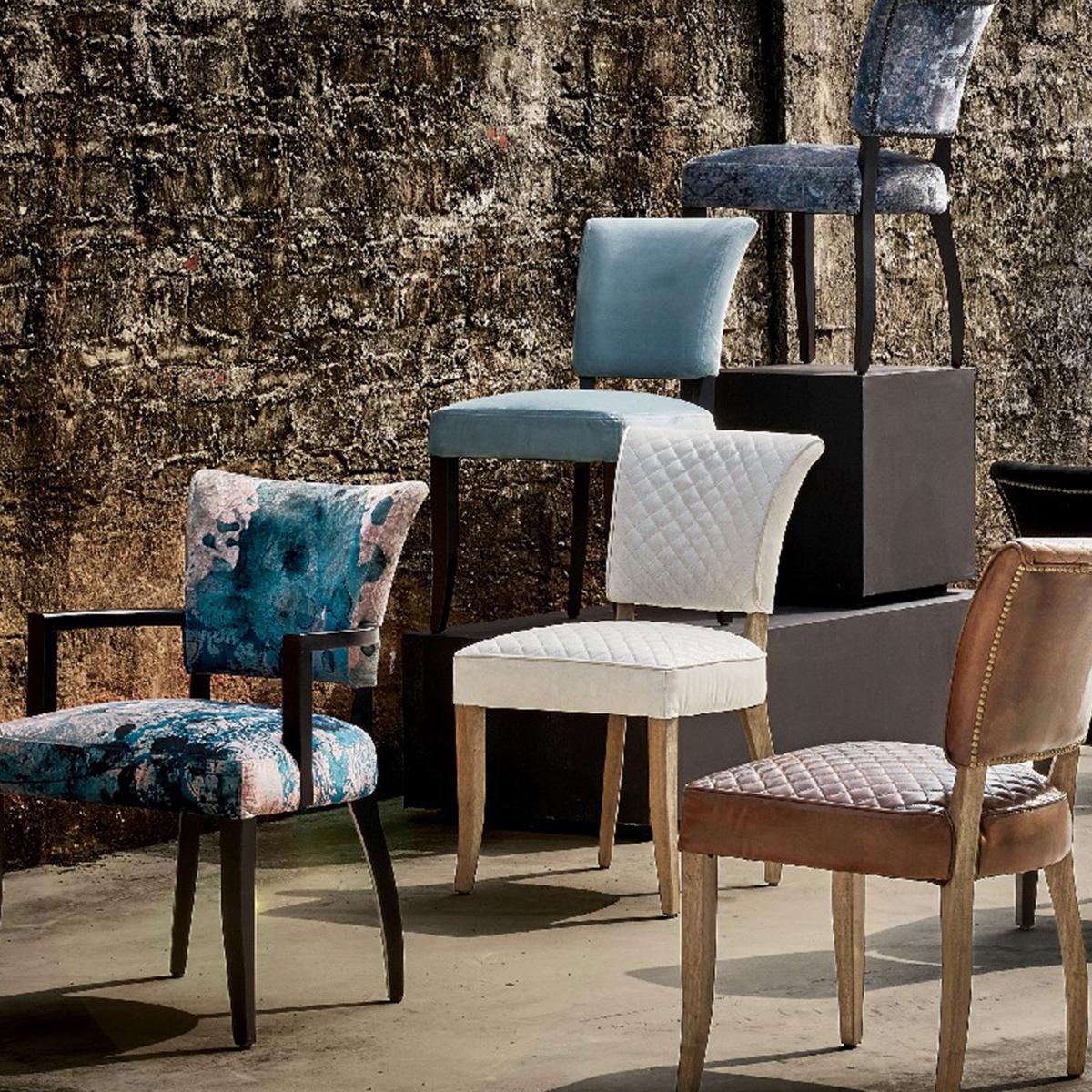 The Mimi is a reinvention of a classic 1940's French dining chair with silver stud detailing and tapered wooden legs. This luxurious, classic style has a gently flared back and padded seat for comfort so you can chat for hours over dinner with friends.
