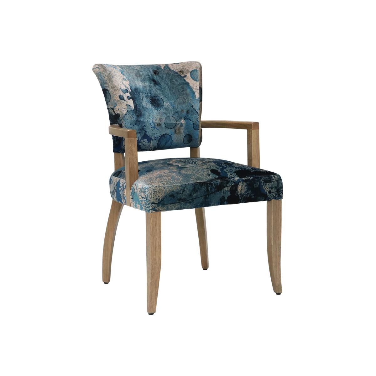 Timothy Oulton Mimi Dining Chair with Arms, Blue Velvet | Barker & Stonehouse