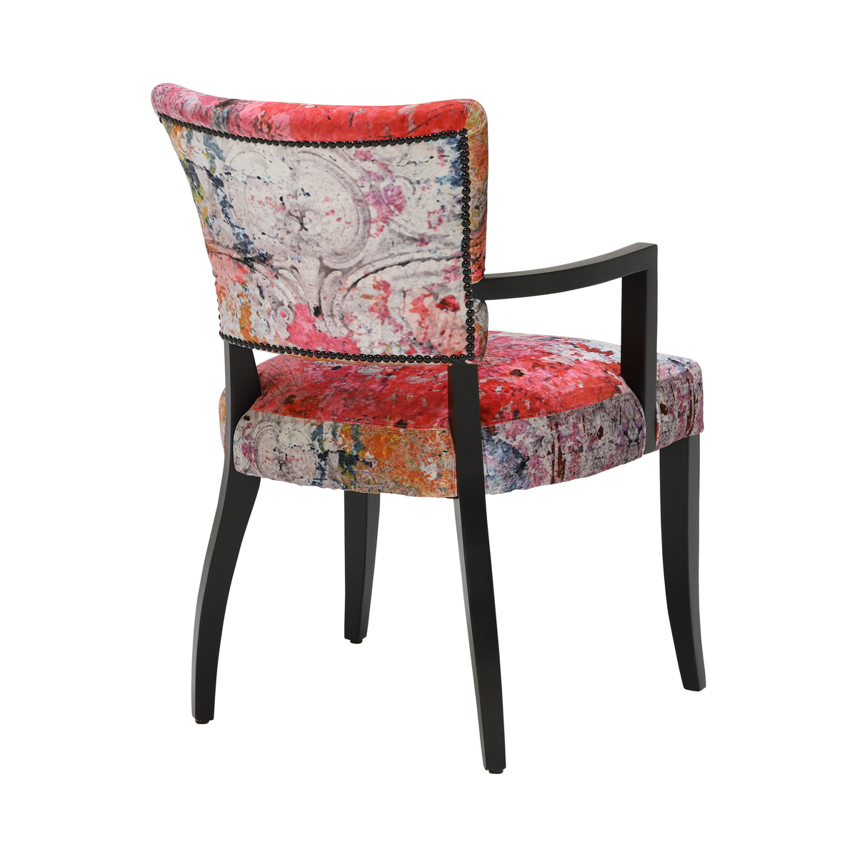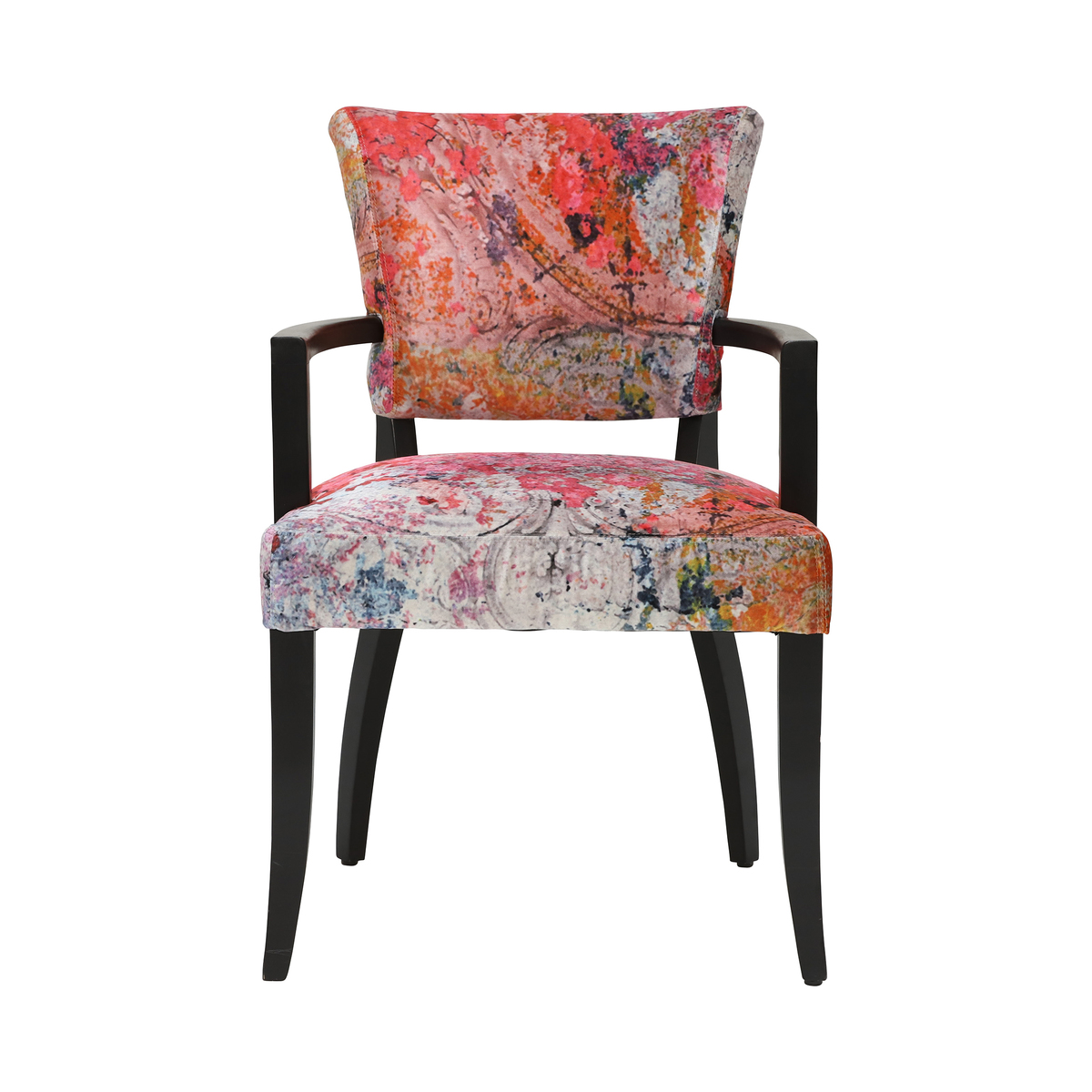 A new extension to our existing Mimi range. The classic flared shape of the Mimi takes a walk on the wild side with the Faded & Degraded velvet with arms collection. From the vibrant pinks of Peeling Ceiling to the more subdued hues of Persia in Decline, these eclectic designs add a fun sophistication to your dining interior.?Please note pattern may vary slightly from piece to piece and from the images shown, each chair is unique.?