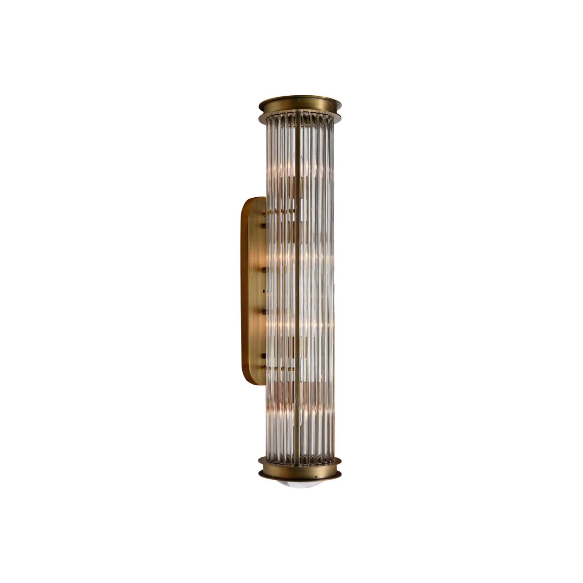 Based on an instrument of astronomy, the Newton collection fosters thoughts of voyage and discovery. Emulating a treasured vintage collectible, polished glass rods stretch out between two magnifying glass ends, diffusing the light for a gentle luminous glow. A plated bronze frame provides vintage charm. The Newton Small Wall Sconce can be mounted either vertically or horizontally.