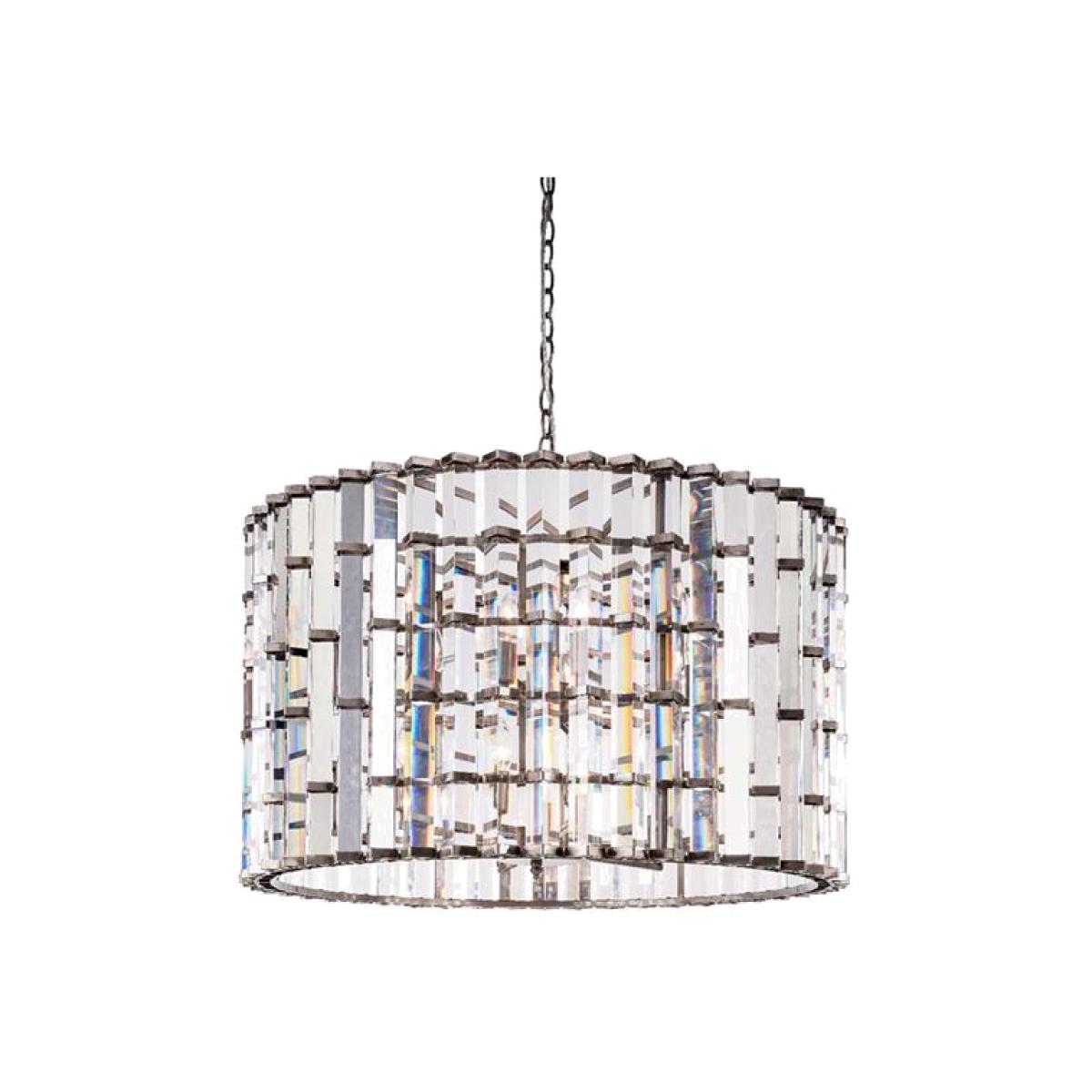 Tall, slender and glamorous, the Night Rod collection offers dramatic lighting for elegant urban spaces. Long prisms of optical grade glass are held tightly together in a staggered effect, within a skeleton of either brushed brass or natural metal. The triangular shape of the prisms reflects and refracts the light on all sides in a shimmering dance of sparkle.