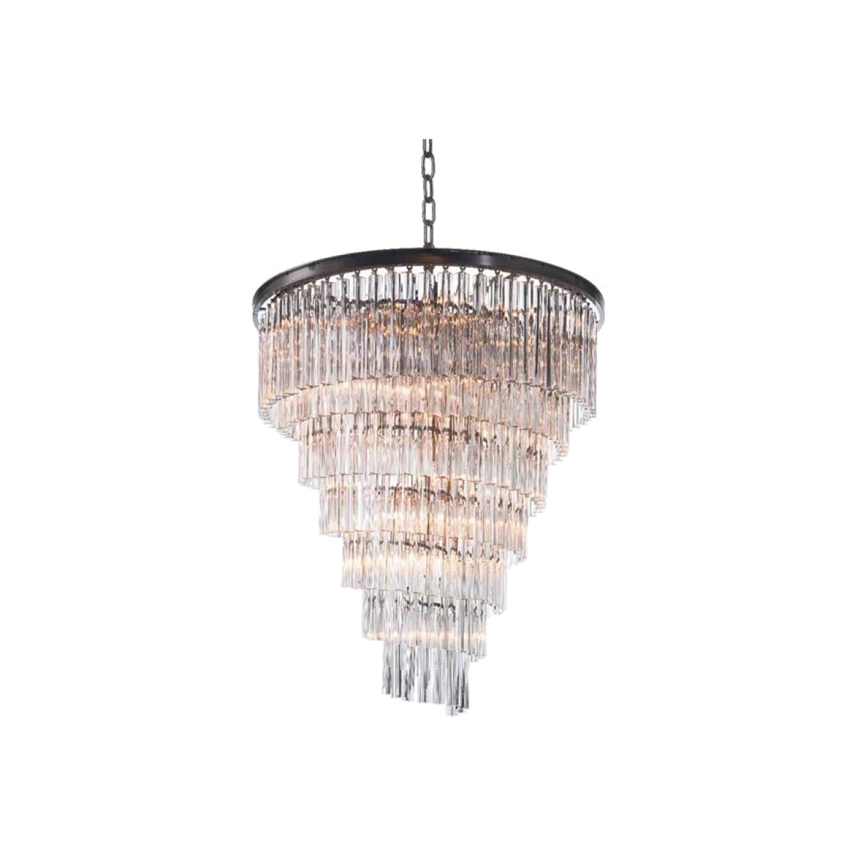 Inspired by the magnificent Odeon buildings in ancient Greece and Rome, originally constructed for musical performances. Traditionally, they had beautifully carved domed roofs for maximum acoustics, with a space in the top for natural light to flood in. The lights spiral design mixes architectural elements from the biblical Tower of Babylon with the helix effect of a spiral staircase, bringing ancient drama and modern glamour to a room.