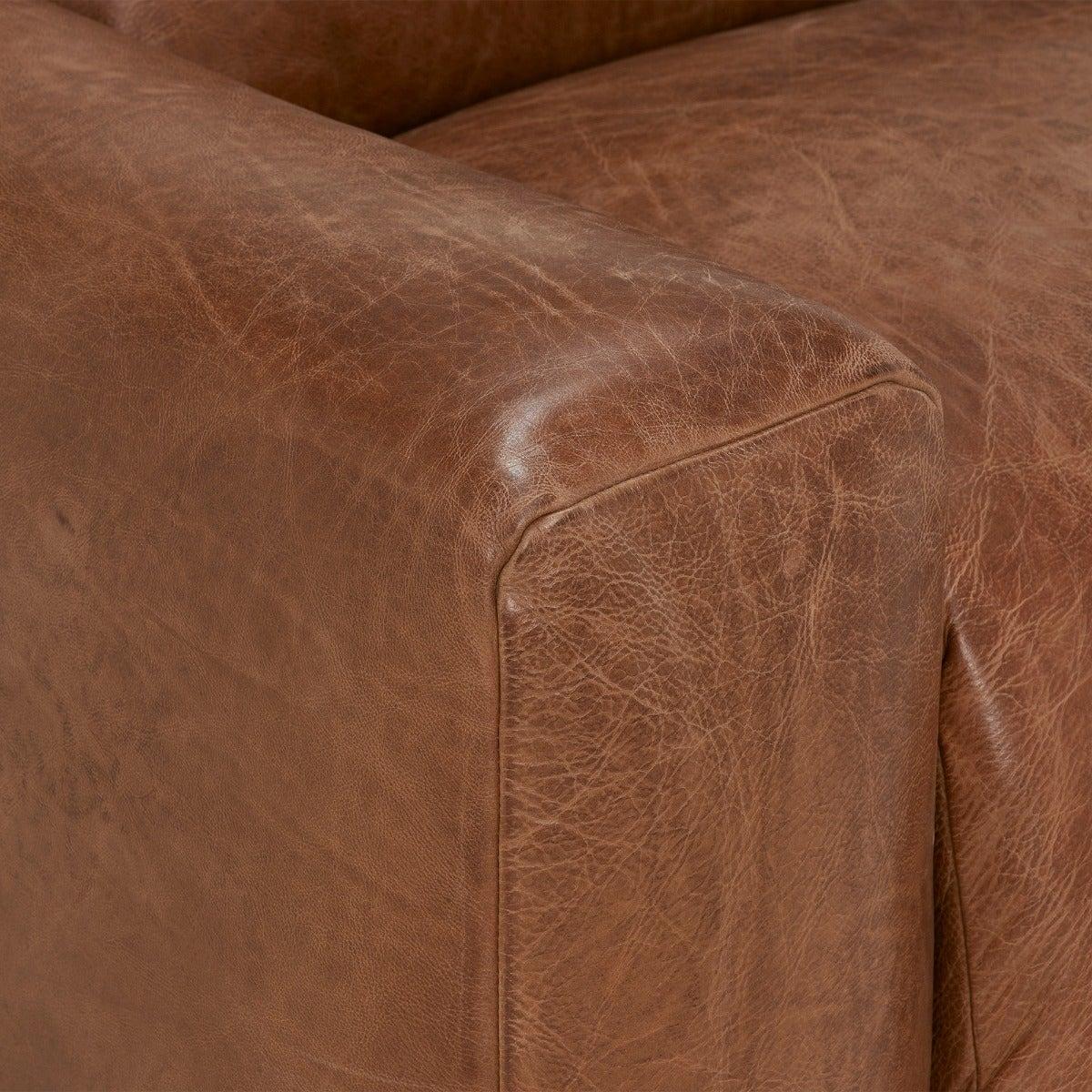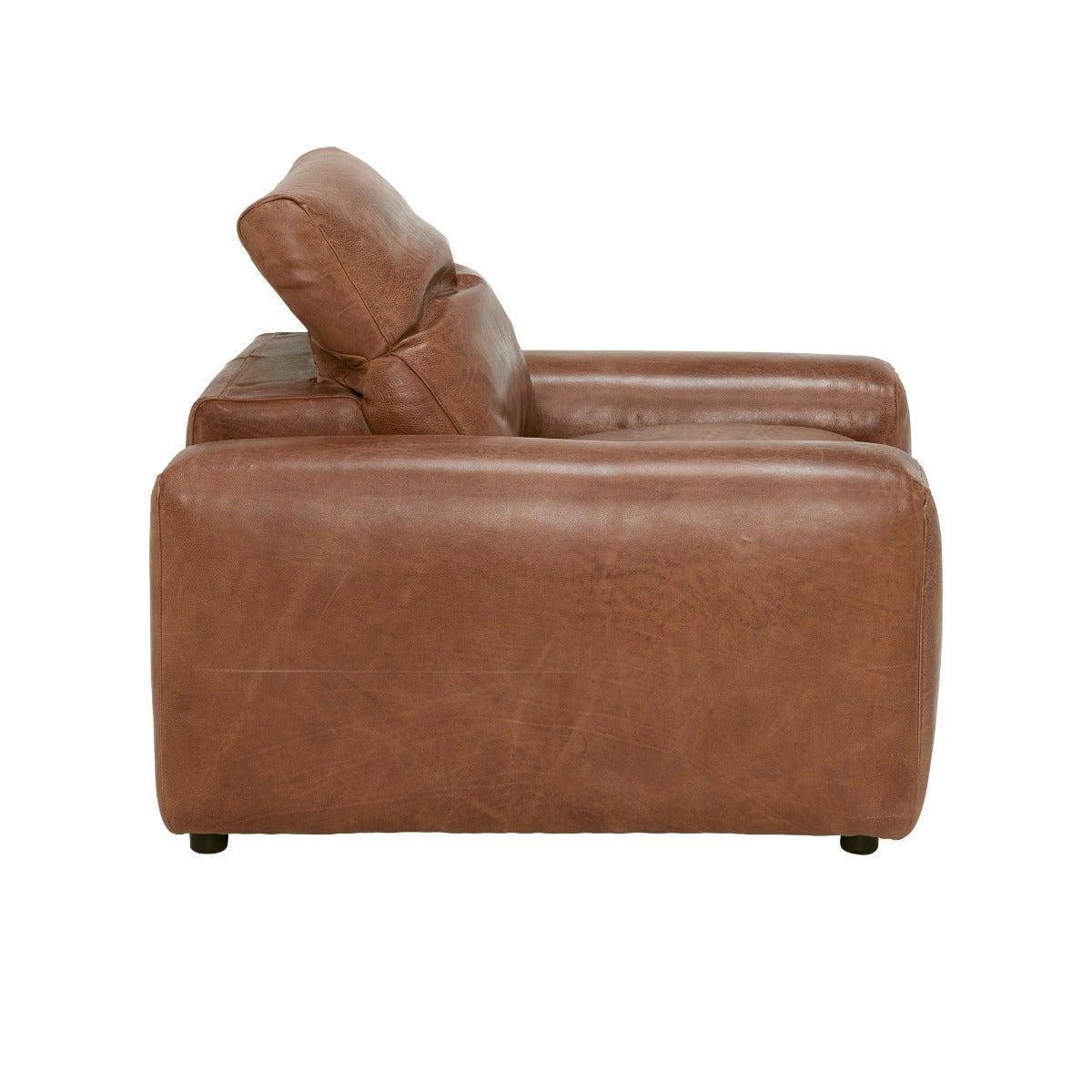 I love this one-seater because its rich brown leather adds warmth and character to both modern and traditional interiors. It works particularly well in eclectic, industrial, or retro-inspired spaces, where its relaxed, slightly oversized silhouette can be a statement piece. For styling, consider pairing it with textured cushions or a cozy throw to soften the look, or place it alongside other leather or wood accents to create a curated, lived-in vibe. Its practical size makes it ideal for smaller living rooms or cosy reading corners, and because it’s leather, it’s easy to maintain - perfect for everyday use.