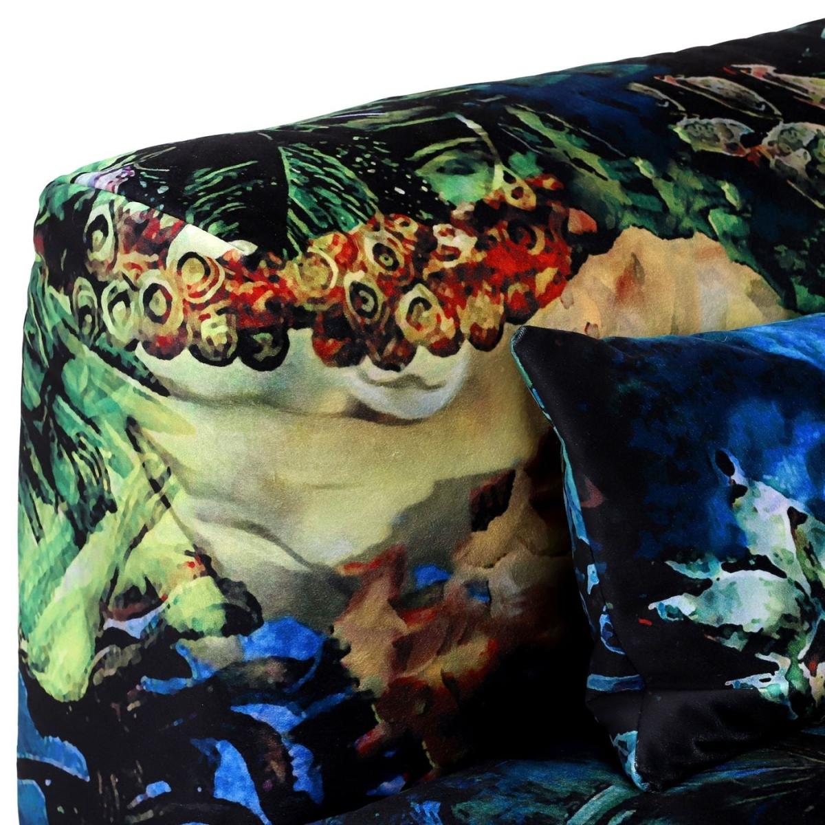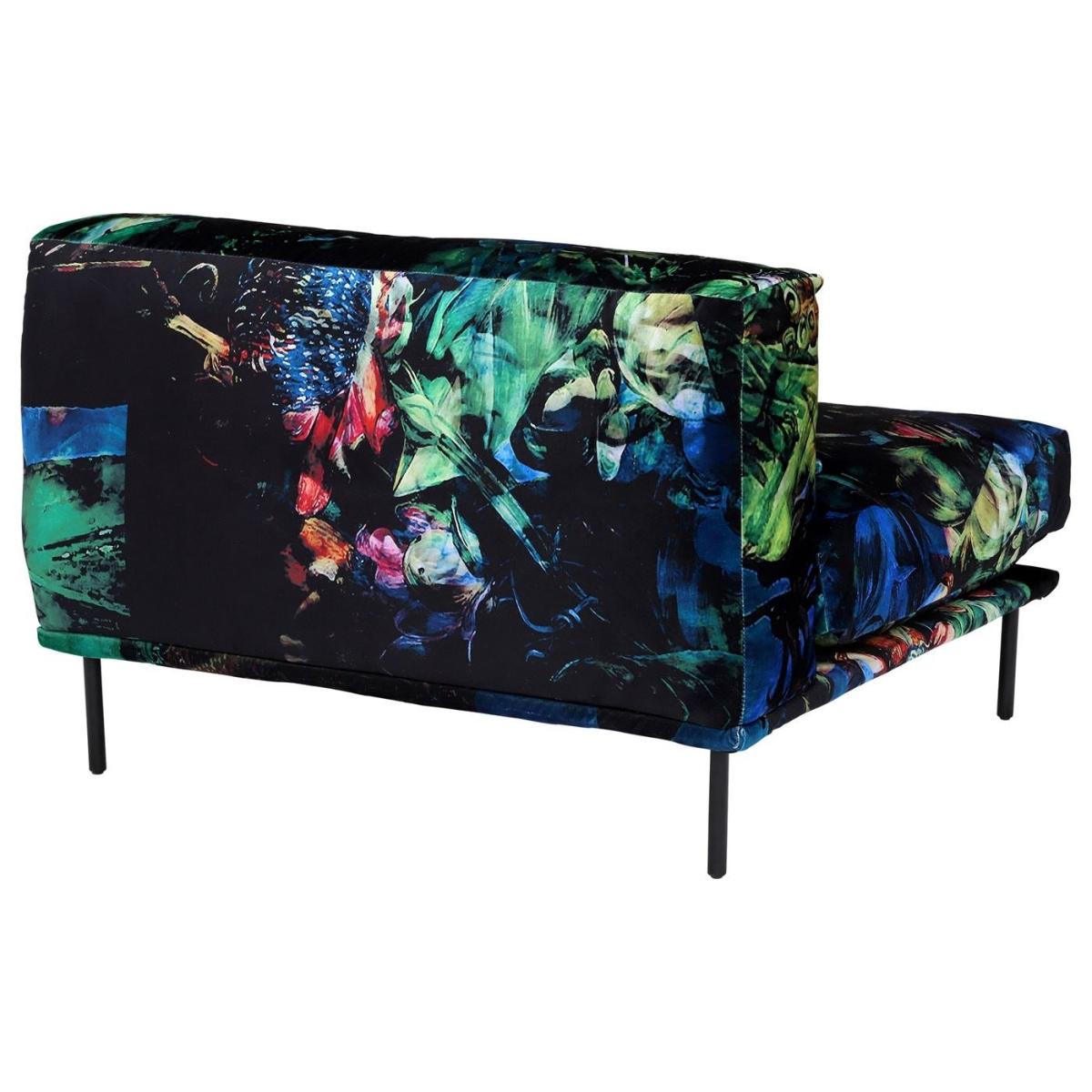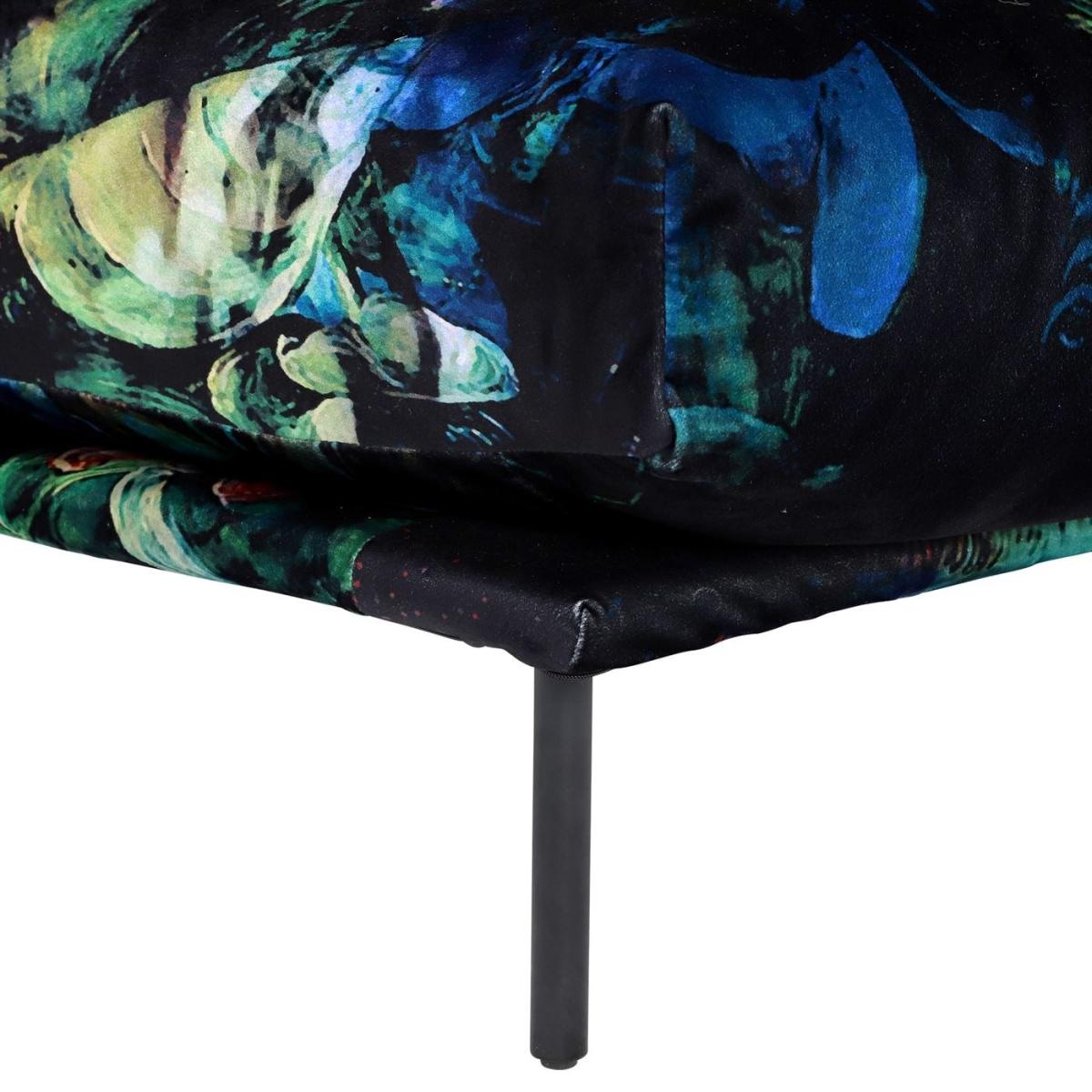 Design. A tribute to true softness, the contemporary-styled Studio sectional sofa invites refined relaxation. Fully-loaded feather pillows are wrapped around a gently supportive core, hugging the body for a joyfully sumptuous experience. Shown here in Acid Jungle velvet; a heady mix of vivid colour and equally intense darkness. Lush greens entwine with vibrant florals in an exotic scene that dances against a deep black backdrop. The perfect sofa for the urban jungle, to relax with friends and let your imagination run wild.