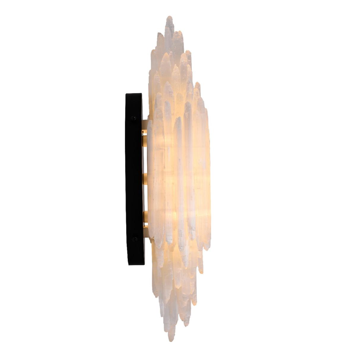 Taking centre stage of the Selenite Sconce is the charismatic beauty of natural selenite. The name selenite derives from a Greek goddess of the moon as its soft pearlescent glow resembles stunning moonlight, creating a warm radiant glow when illuminated. A stunning intriguing light to add to the walls of your home.