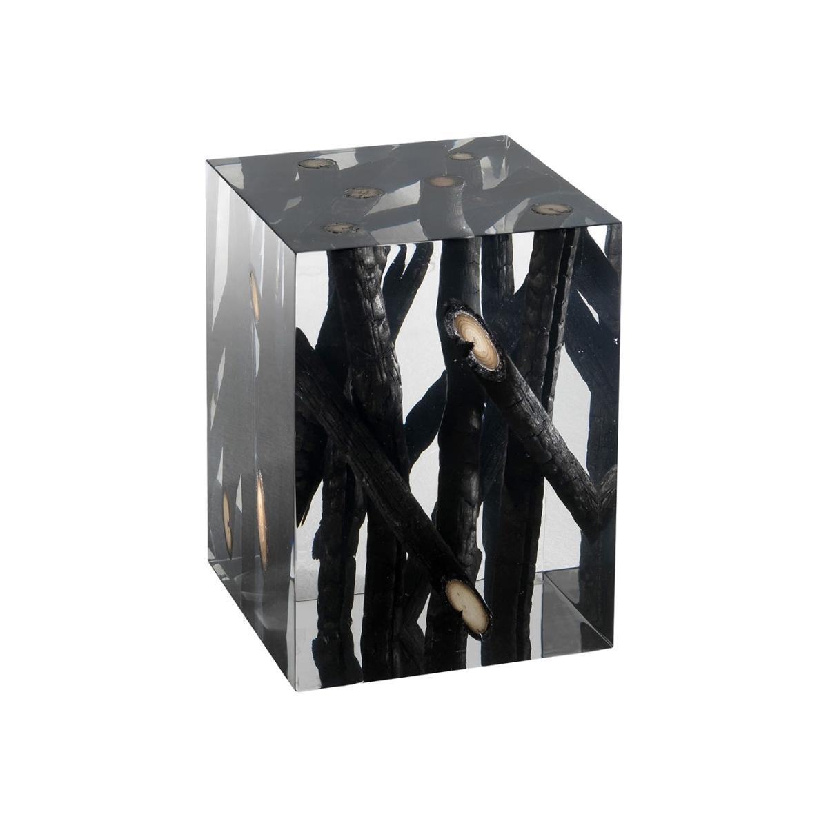 I love the timber effect on this small side table - it brings a tactile, rustic feel that adds warmth and character to a variety of interiors. Its transparent casing makes it versatile, working equally well in contemporary, industrial, or eclectic schemes. For styling, consider pairing it with natural fibres or metal accents to highlight its organic appeal, and use it as a statement piece beside neutral sofas or armchairs. Practical tips include positioning it close to seating for easy access, and adding a small lamp or decorative object on top to enhance its sculptural qualities without overcrowding. This piece is perfect for inserting a touch of nature-inspired texture into layered and modern spaces.