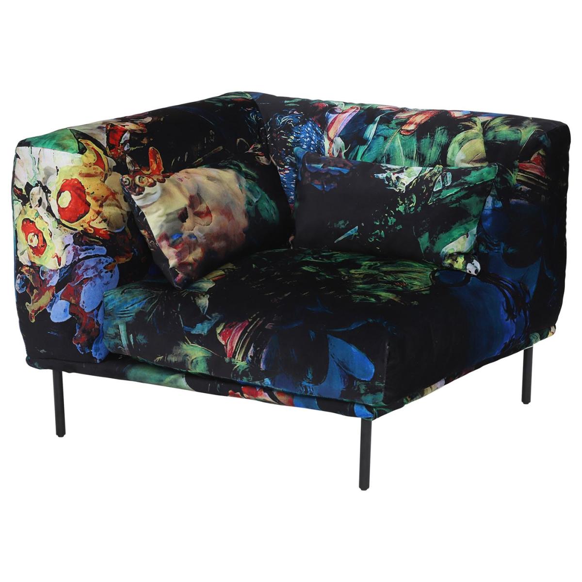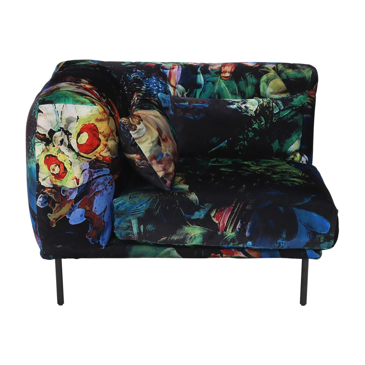 A tribute to true softness, the contemporary-styled Studio sectional sofa invites refined relaxation. Fully-loaded feather pillows are wrapped around a gently supportive core, hugging the body for a joyfully sumptuous experience. Shown here in Acid Jungle velvet; a heady mix of vivid colour and equally intense darkness. Lush greens entwine with vibrant florals in an exotic scene that dances against a deep black backdrop. The perfect sofa for the urban jungle, to relax with friends and let your imagination run wild.