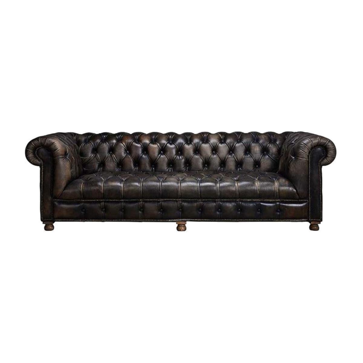 Design. Timothy Oultons take on a classic Chesterfield sofa with its distinctive deep buttoned detailing, the Westminster Button is handcrafted using around 1300 studs applied by hand. The distressed leather adds an antiquated aesthetic while its refined proportions add a modern touch.