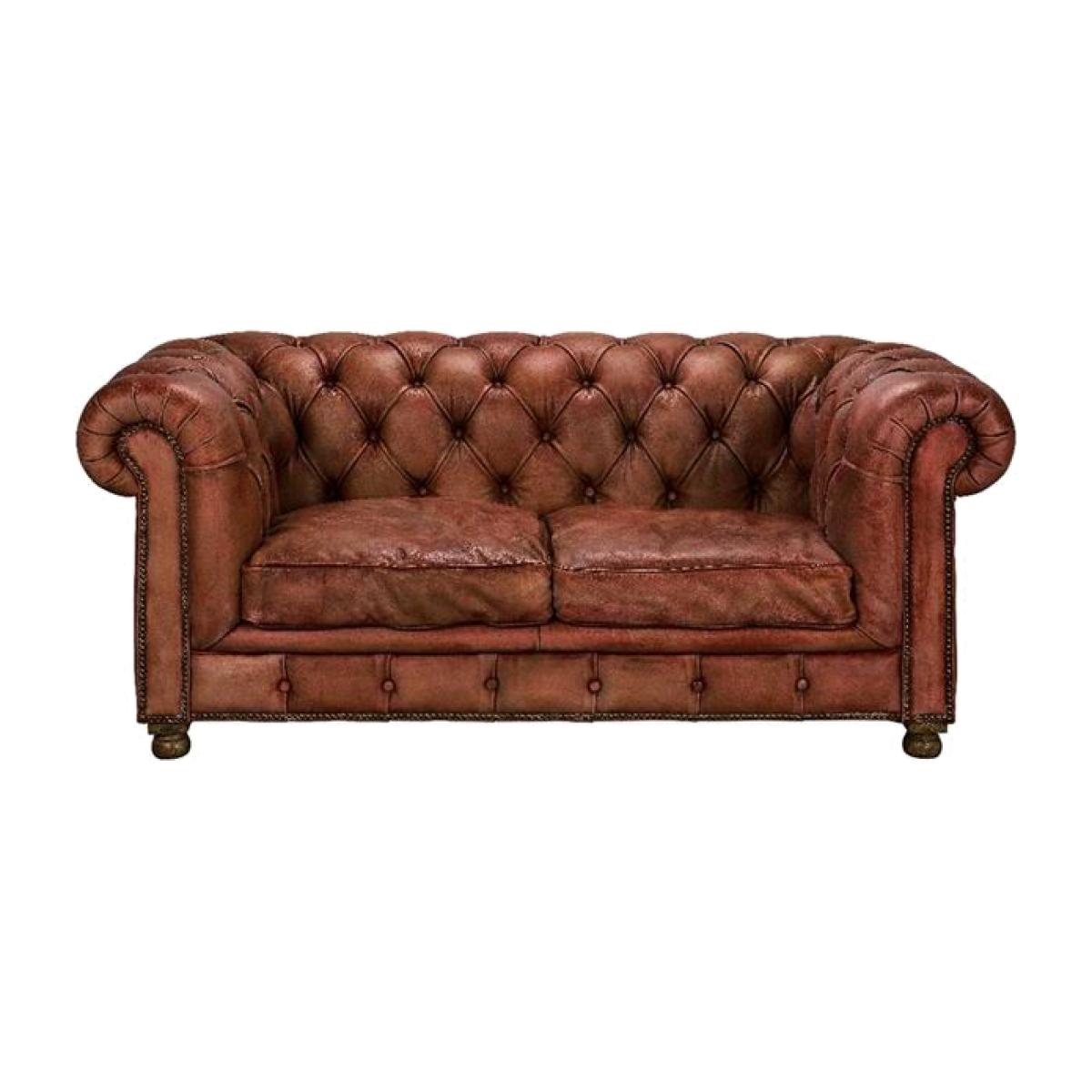 Timothy Oulton Westminster Feather Chesterfield Sofa 2 Seater, Red Leather | Barker & Stonehouse