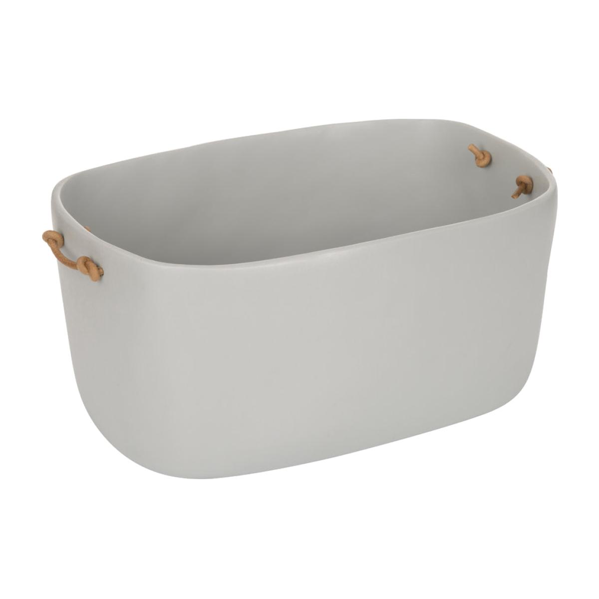 Bring high quality design to the home with this Storage Basket from Tina Frey Designs. Handmade by Tina Frey in San Francisco, it features fluid lines and organic contours to emulate the curves of nature. Finished with real leather handles, it is perfect for storing a range of essentials from magazines in the living room to towels in the bathroom. Pair this storage basket with more home accessories from Tina Frey to complete the look. Key features: * Storage basket * Material: resin, leather * Dimensions: 43x30.5x20cm * Grey colour * Enhanced with real leather handles * Handmade by Tina Frey