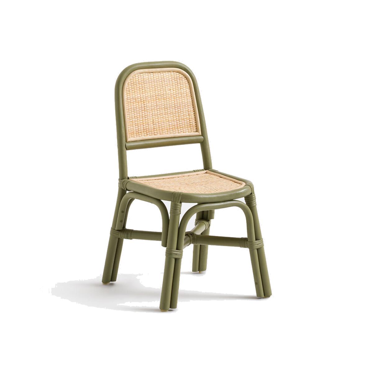 Retro style, fresh colours and meticulous details: the Tina chair overturns the classic rules on rattan. Perfect around a desk or solo in a reading corner, it combines comfort and elegance with its light frame and airy canework. A piece with character creating a lively, bright, seriously stylish area for kids. Product Details • Rattan cane frame • Seat and backrest in braided rattan • Nitrocellulose varnish finish • Artisanal craftsmanship. Dimensions • Width: 33cm • Height: 60cm • Depth: 36cm • Seat:L28 x H30 x D29cm • Weight:Weight: 1.5kg. Quality Info • This product complies with current safety requirements • Suitable from age 3 years • Sold pre-assembled. Parcel Dimensions • 1 parcel • L36 x H63 x D39cm. 3kg