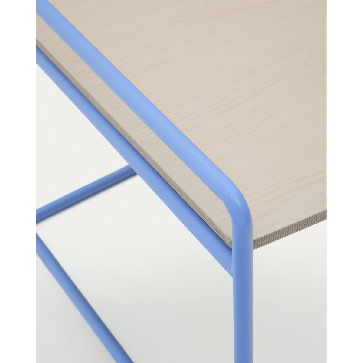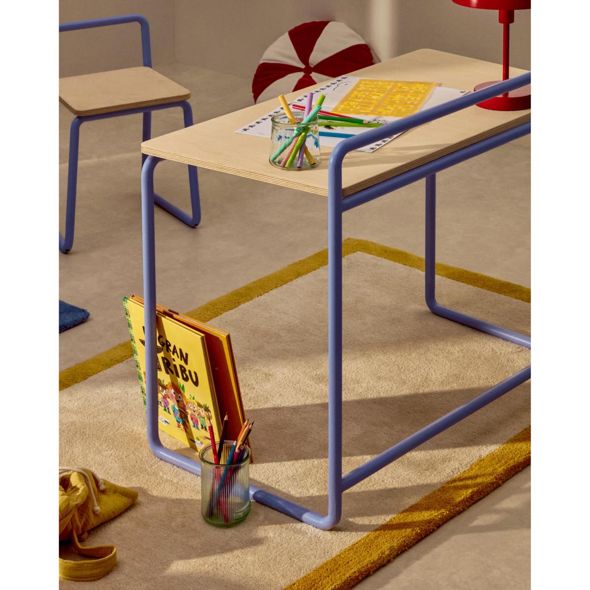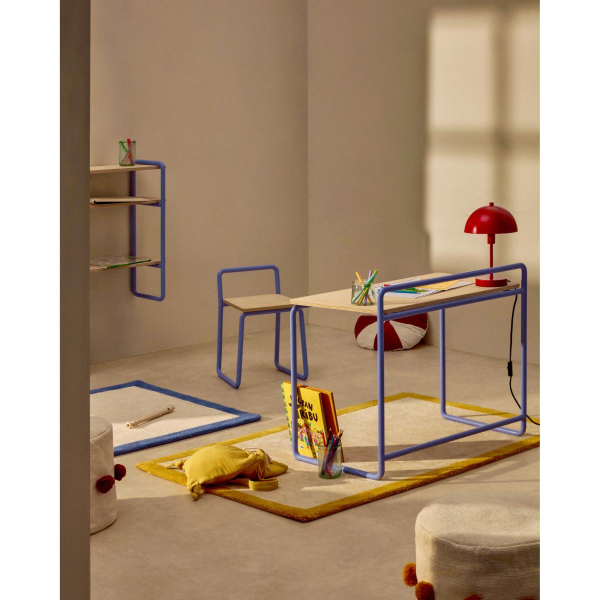 I love this compact desk for its modern and playful design that easily blends into a variety of interiors, especially those with a colourful or Scandinavian-inspired palette. The Tinn ash veneer top offers a warm, natural touch, while the blue metal frame adds a cheerful pop of colour without overwhelming the space. It’s versatile enough to work well in child-centric rooms, creative corner areas, or even as a dedicated homework station in a multi-use space. Practical styling tips include pairing it with simple organisers or colourful storage boxes to keep clutter at bay, and positioning it near a good light source to make study time more inviting. Its size is ideal for smaller spaces, making it a smart choice for both cosy bedrooms and dedicated play areas.