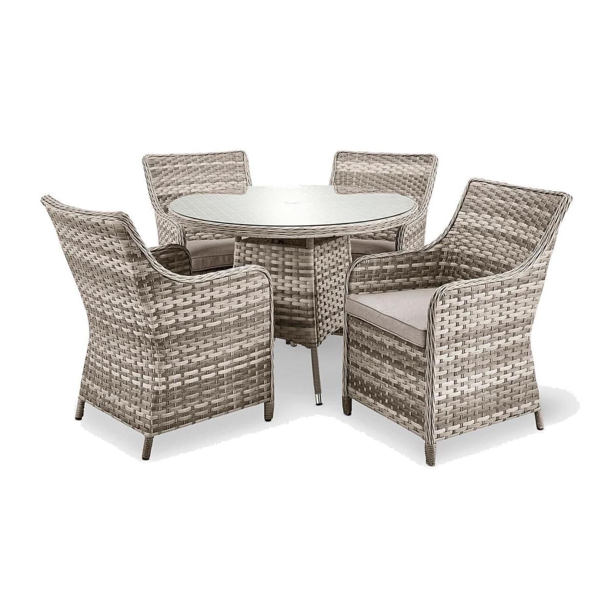 Dine in elegance with the Tintagel Collection, an exclusive range of powder-coated aluminium dining sets designed for stylish alfresco living. Combining rust-resistant aluminium frames with beautifully woven PE rattan and sleek glass tabletops, this collection offers the perfect balance of durability, sophistication, and comfort. Designed for effortless outdoor entertaining, the dark grey powder-coated aluminium frames provide a lightweight yet sturdy structure, ensuring long-lasting resistance to rust and corrosion. The chairs feature thick, comfortable seat cushions, making every meal a relaxed and enjoyable experience. The tables showcase a stunning rattan weave topped with a sleek, tempered glass surface, offering a refined look that is easy to clean and perfect for outdoor dining. Whether you're enjoying a sunlit brunch or hosting an evening feast under the stars, the Tintagel Collection provides a sophisticated and inviting space for making lasting memories. Upgrade your outdoor dining experience with the timeless elegance and durability of the Tintagel Collection, where contemporary design meets long-lasting comfort.