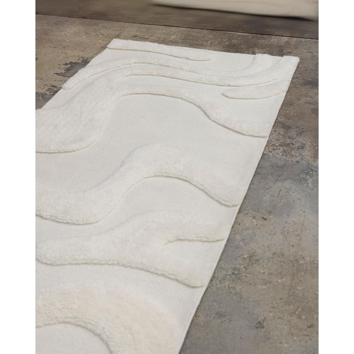 I love this wool rug for its clean, minimalist look and soft texture, making it a versatile choice for a range of interiors. Its off-white hue and subtle wave pattern work well in contemporary and Scandinavian-style spaces, adding a touch of understated elegance without overpowering the room. Because it’s quite large, it’s ideal for defining an entryway or a spacious hallway. For styling tips, consider pairing it with sleek furniture and simple colour schemes to keep the look cohesive. To keep it looking fresh, place a good quality doormat nearby and encourage removing shoes before stepping onto the rug. Its durable wool construction also makes it a practical choice for high-traffic entrances, blending style with function seamlessly.