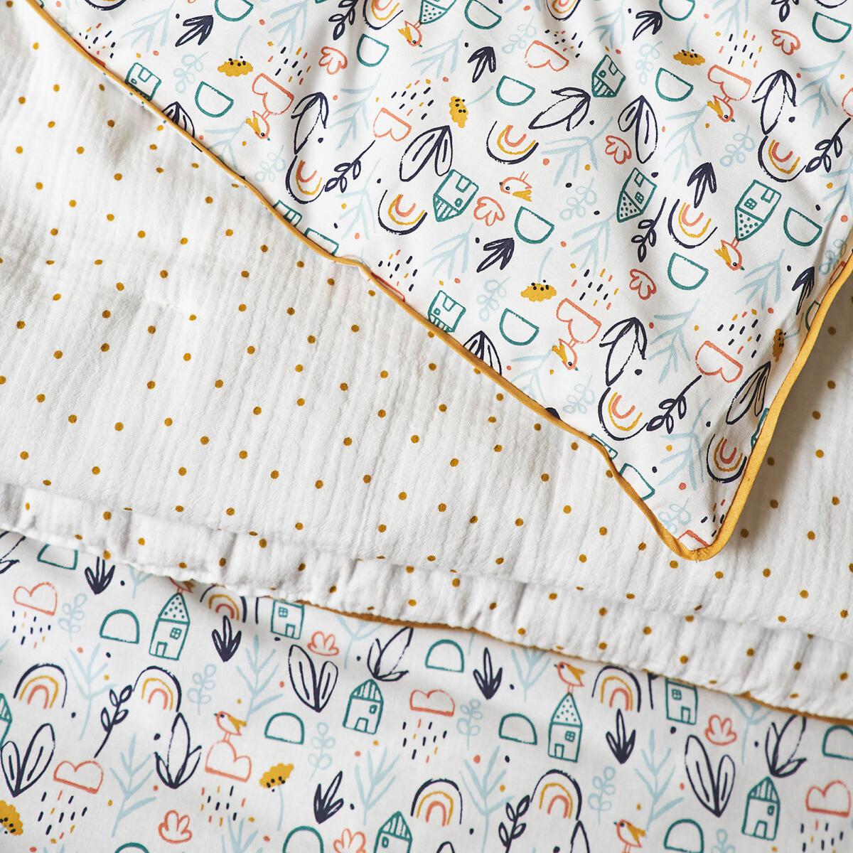 Tiny House bed linen comes alive with sweet little houses, flowers and clouds to brighten up the little ones' bedroom. Plus, its cotton fabric is kind to baby's skin.