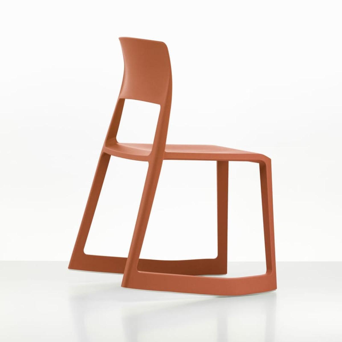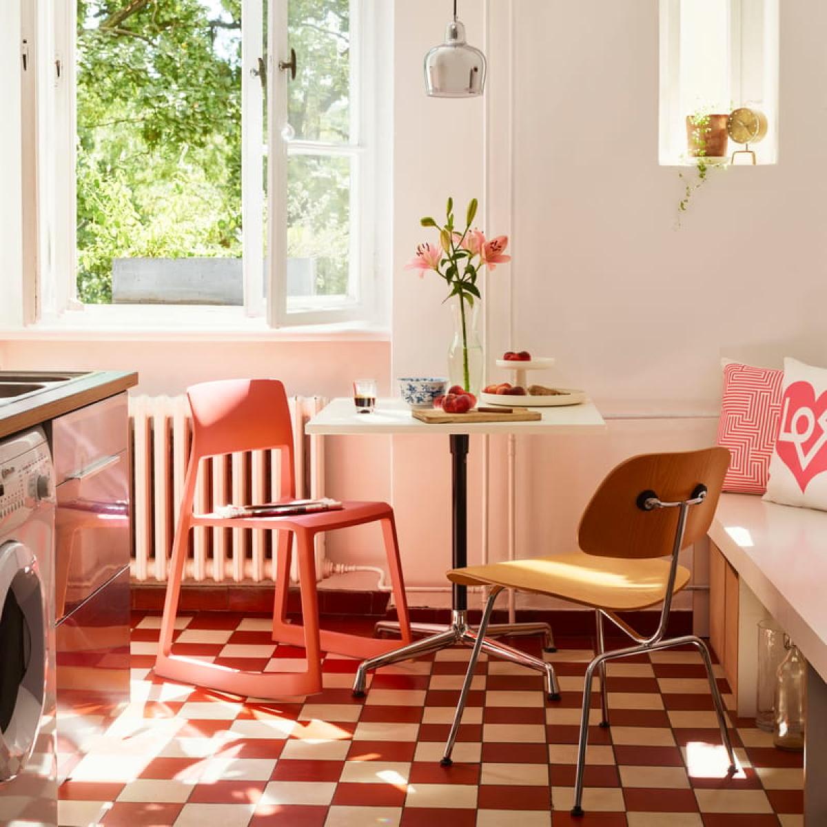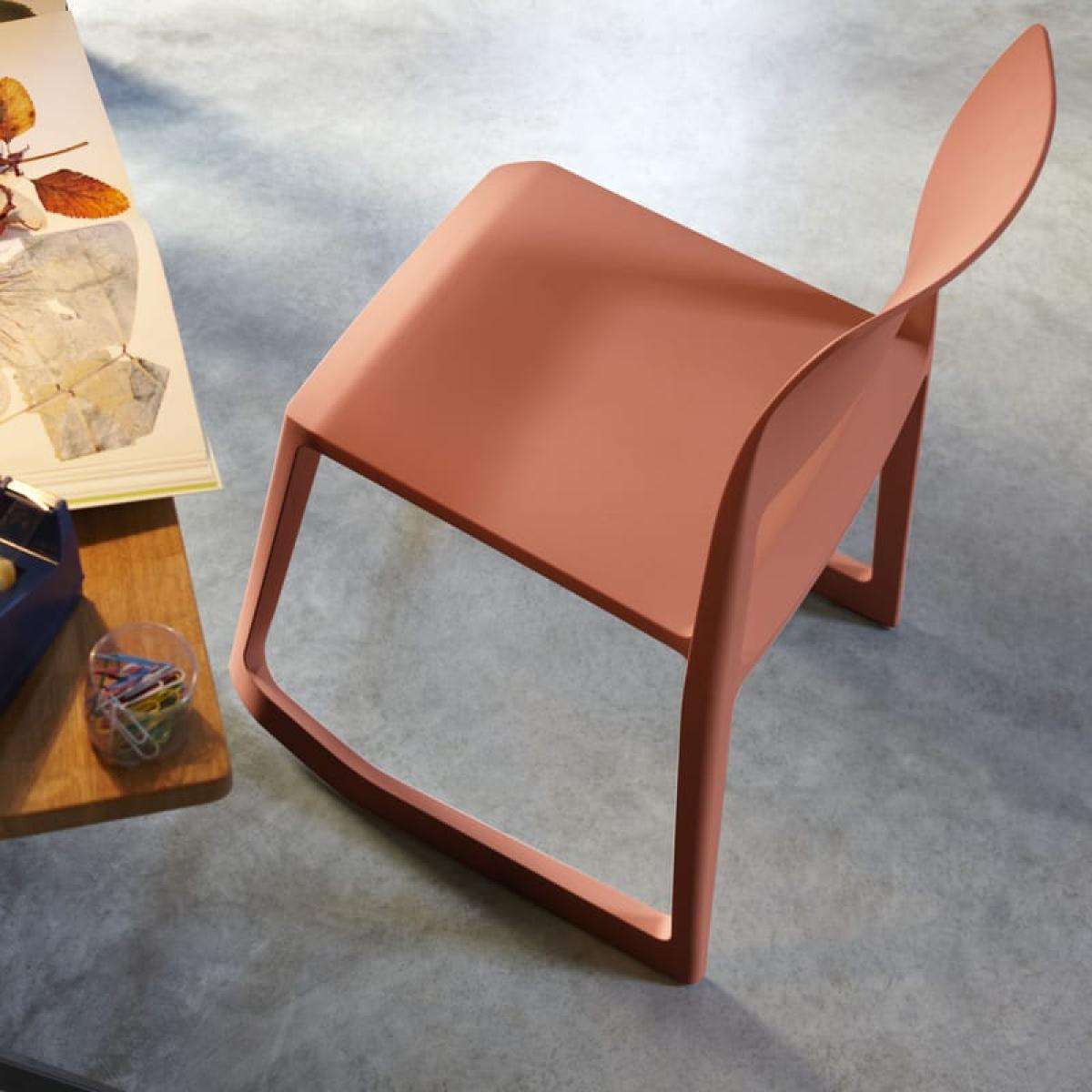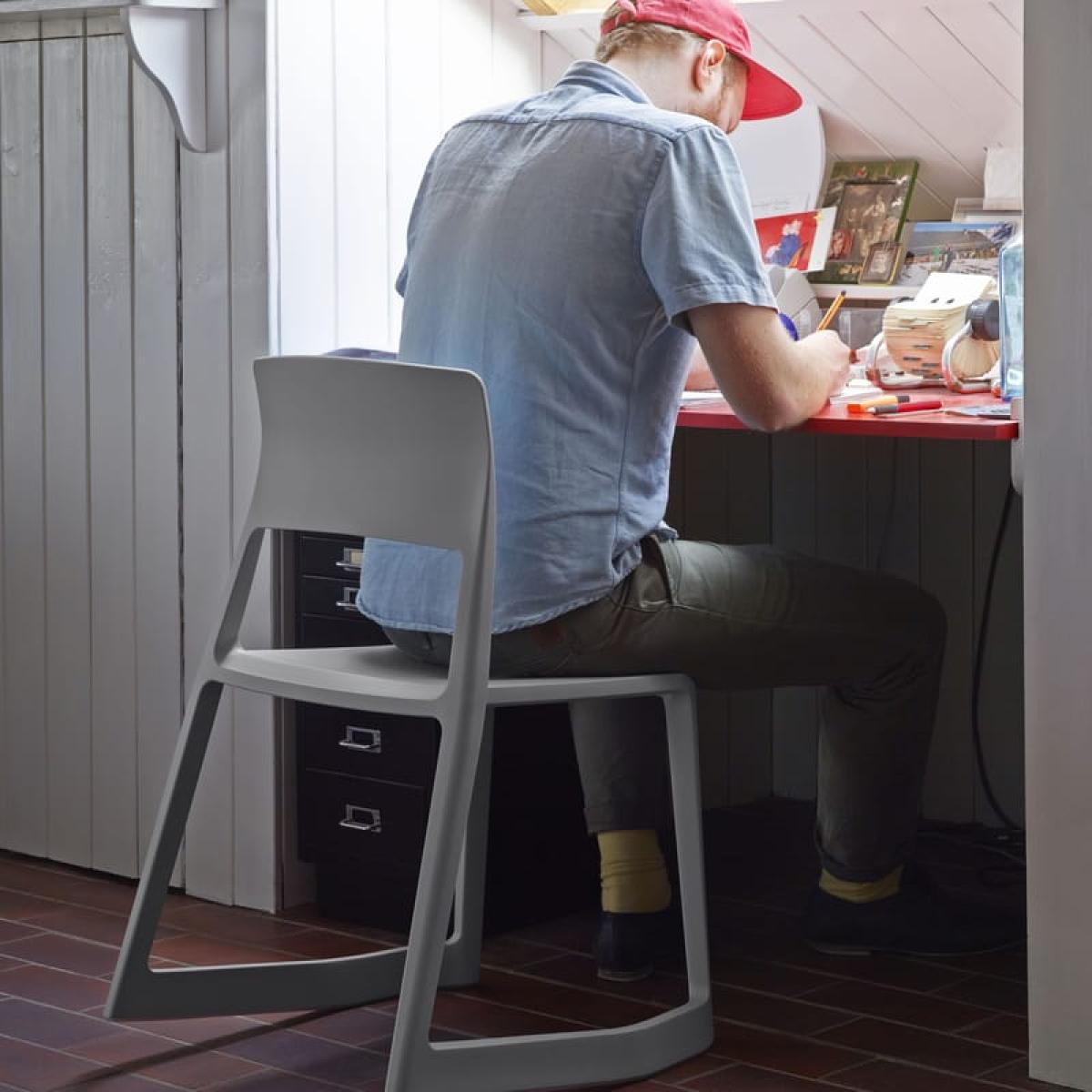 In 2008, British design duo Edward Baber and Jay Osgerby were commissioned to develop a furniture concept for London's Royal Society of Arts Academy. They realized that no existing chair was suitable for 21st-century learning: almost all seating for learning was based on outdated pedagogical lines - on transmitting knowledge to static pupils, who were expected to learn by sitting still. Barber and Osgerby drew up a list of criteria that a modern seat for young students should meet: indestructible, lightweight, easy to manufacture, silent, stackable, colorful and fully recyclable. And it must allow movement. These complex requirements call for a revolutionary seat - for an entirely new seating position.