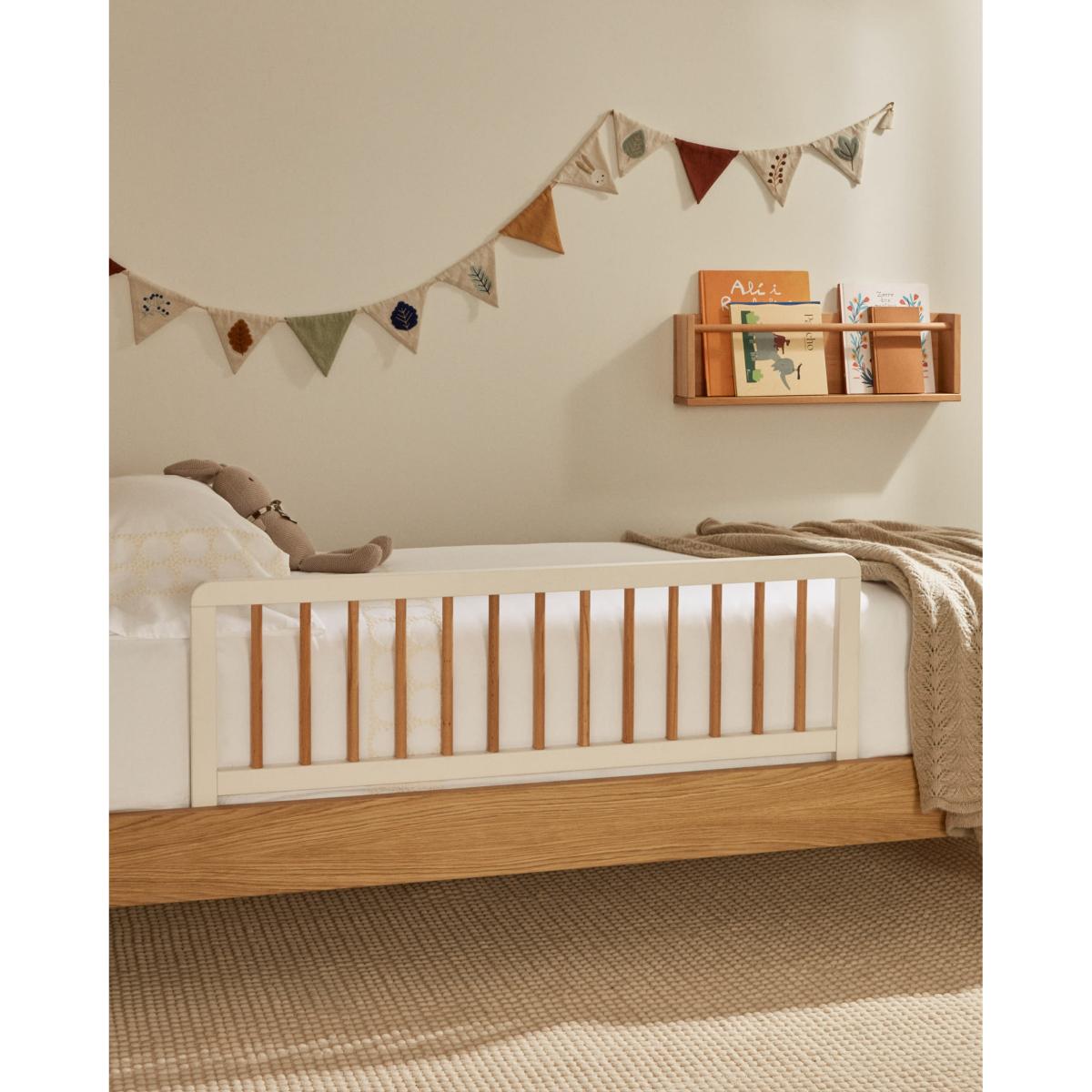 Tiphaine solid beech wood bed safety barrier with natural and white finish, 100 x 40 cm