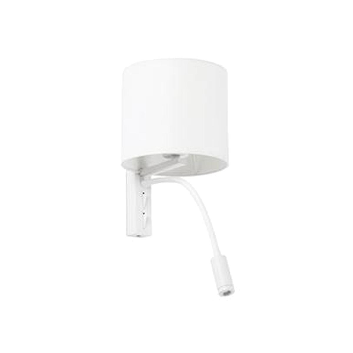 A pleasant wall light, which is an ideal choice for a bedside lamp. The fitting is composed of an E27 wall light with a shade, which is then enhanced with the addition of an LED reading lamp. The reading lamp is on the end of a flexi-tube to make it a highly effective fitting. The fittings are available in black or white finish, allowing you to choose the best one for the setting. LED driver included. The fitting is complete with a double switch for the ultimate convenience.