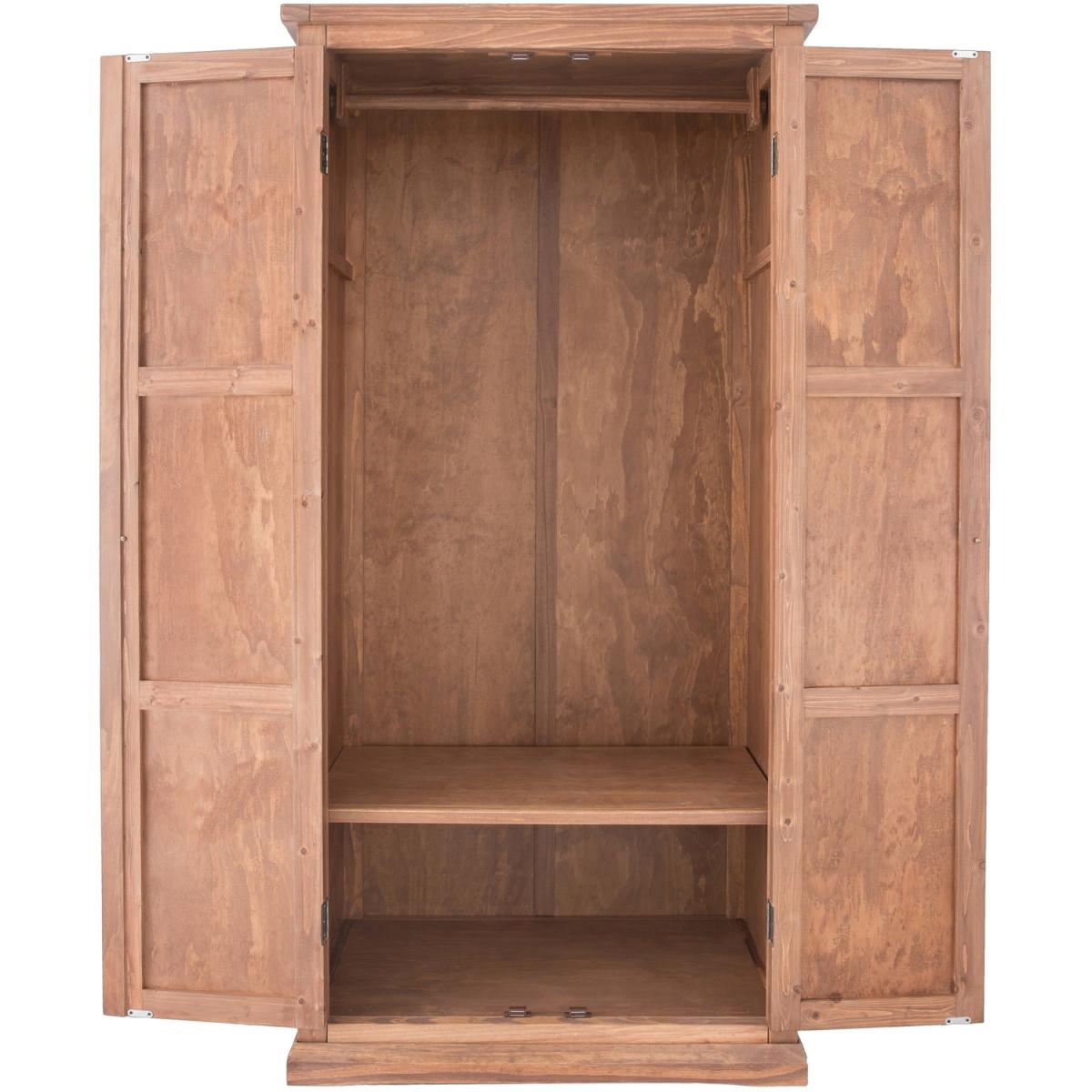 Our Tirolo collection has a simple but pleasing design and is produced by our skilled craftsmen to the highest standards using responsibly sourced solid wood and veneers. All items are made using a combination of solid pine wood and veneers and are carefully hand-finished in a light brown colour using a high-quality eco-friendly water-based lacquer. This two-door wardrobe can house your clothes in a variety of ways. The rail at the top allows you to hang your clothes freely without creasing, there is a shelf in the lower part of the robe but this can be removed if you wish to have full hanging space. If you keep the shelf in it creates a separate storage area below for folded clothes or shoes or indeed for spare bedding, also you can use the shelf itself as further storage. Added to these features is a simple construction for easy home assembly, making it a great value product to be taken home today.
