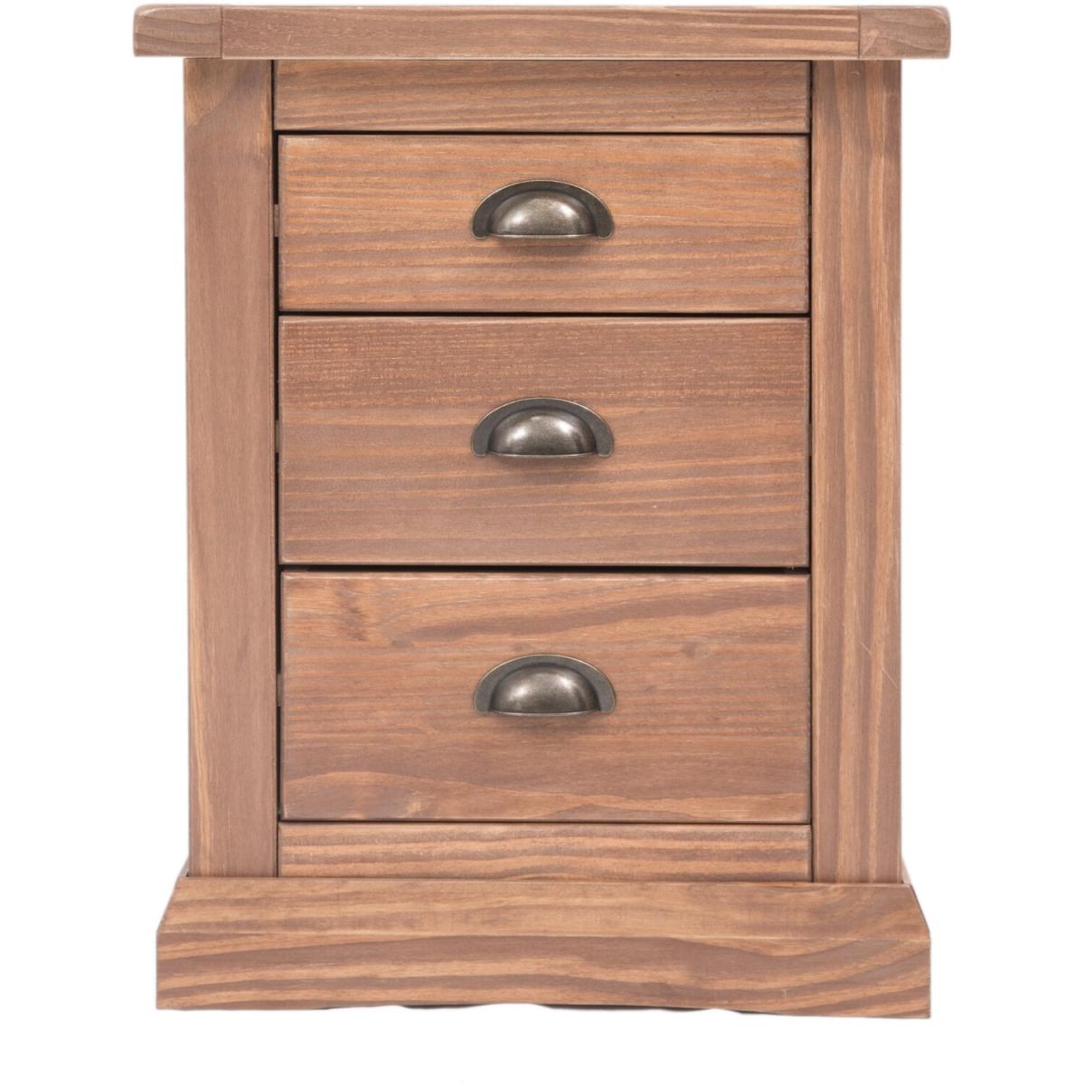 Our Tirolo collection has a simple but pleasing design and is produced by our skilled craftsmen to the highest standards using responsibly sourced solid wood and veneers. All items are made using a combination of solid pine wood and veneers and are carefully hand-finished in a light brown colour using a high-quality eco-friendly water-based lacquer. A combination of drawer sizes means this 3-drawer bedside allows for flexible storage. The top drawer is shallow and perfect to house your reading material, medication or jewellery. The two drawers below are deeper and ideal for storing underwear or accessories. These attributes combined with a simple construction for easy assembly make it a great value product to be taken home today.